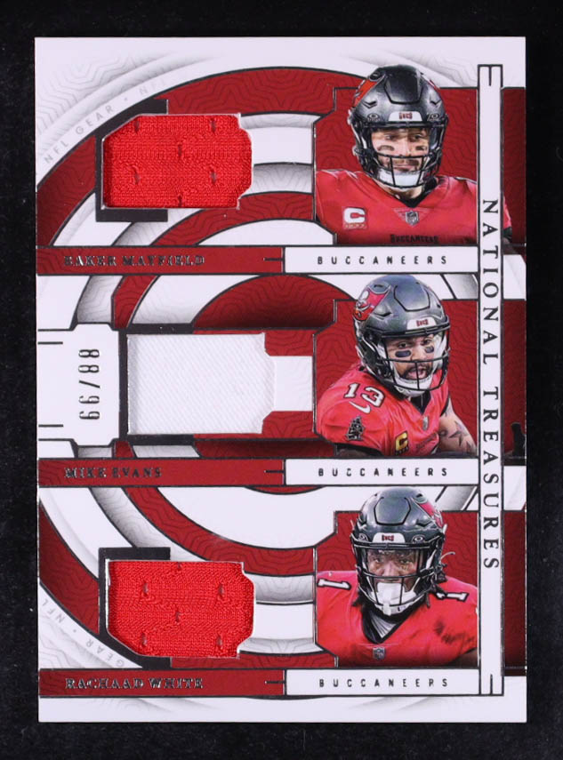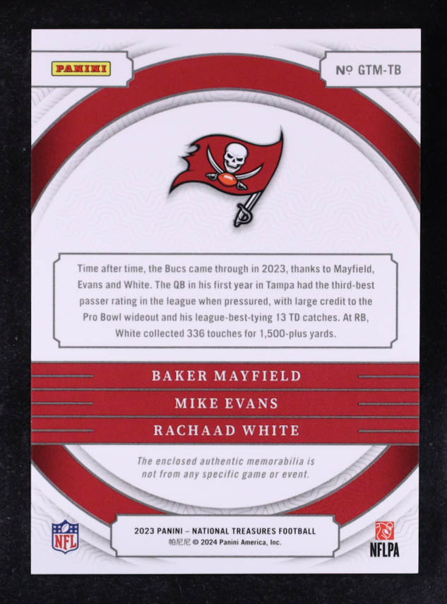 Baker Mayfield / Mike Evans / Rachaad White 2023 Panini National Treasures NFL Gear Trio Materials #16 #88/99