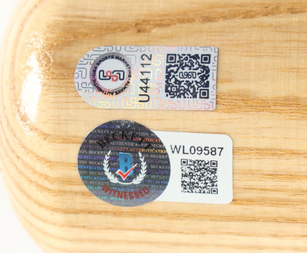The autograph includes an official USA Sports Marketing (USA SM) hologram, as well as an official Beckett Authentication Services serially numbered hologram for authenticity purposes. The signing of this item was witnessed by Beckett.