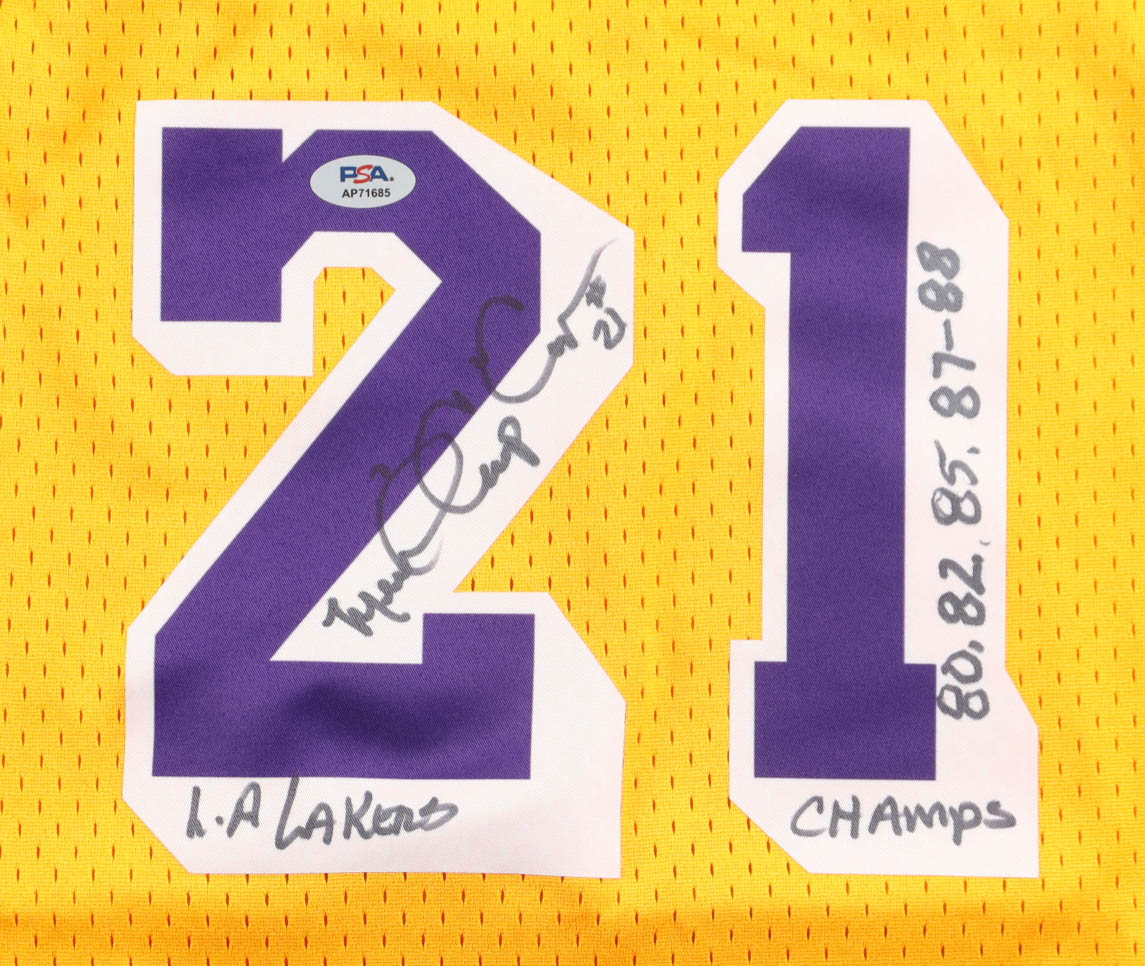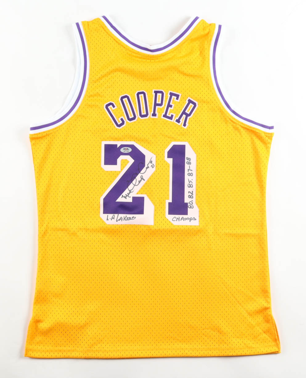 Michael Cooper Signed Lakers Mitchell & Ness Authentic Jersey Inscribed "LA Lakers" & "80, 82, 85, 87-88 Champs" (PSA)