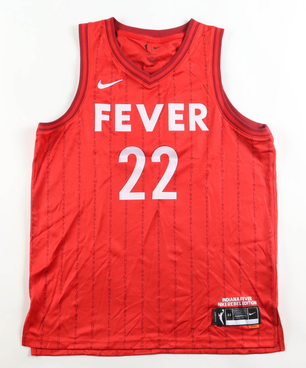 Nike authentic jersey with everything pressed on, size 48. Hand-signed by Caitlin Clark (Indiana Fever).