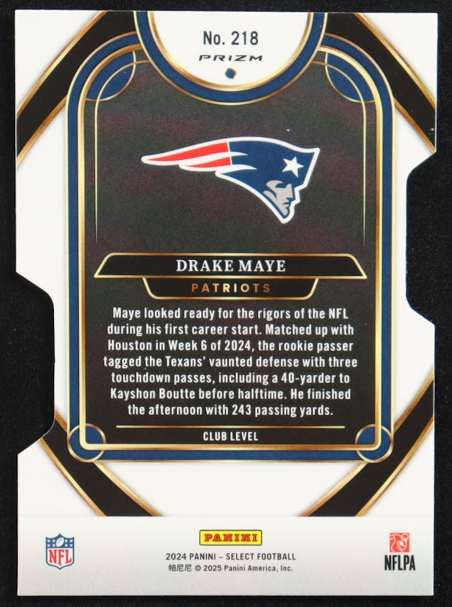 Drake Maye 2024 Select Prizm Silver Die Cut #218 RC