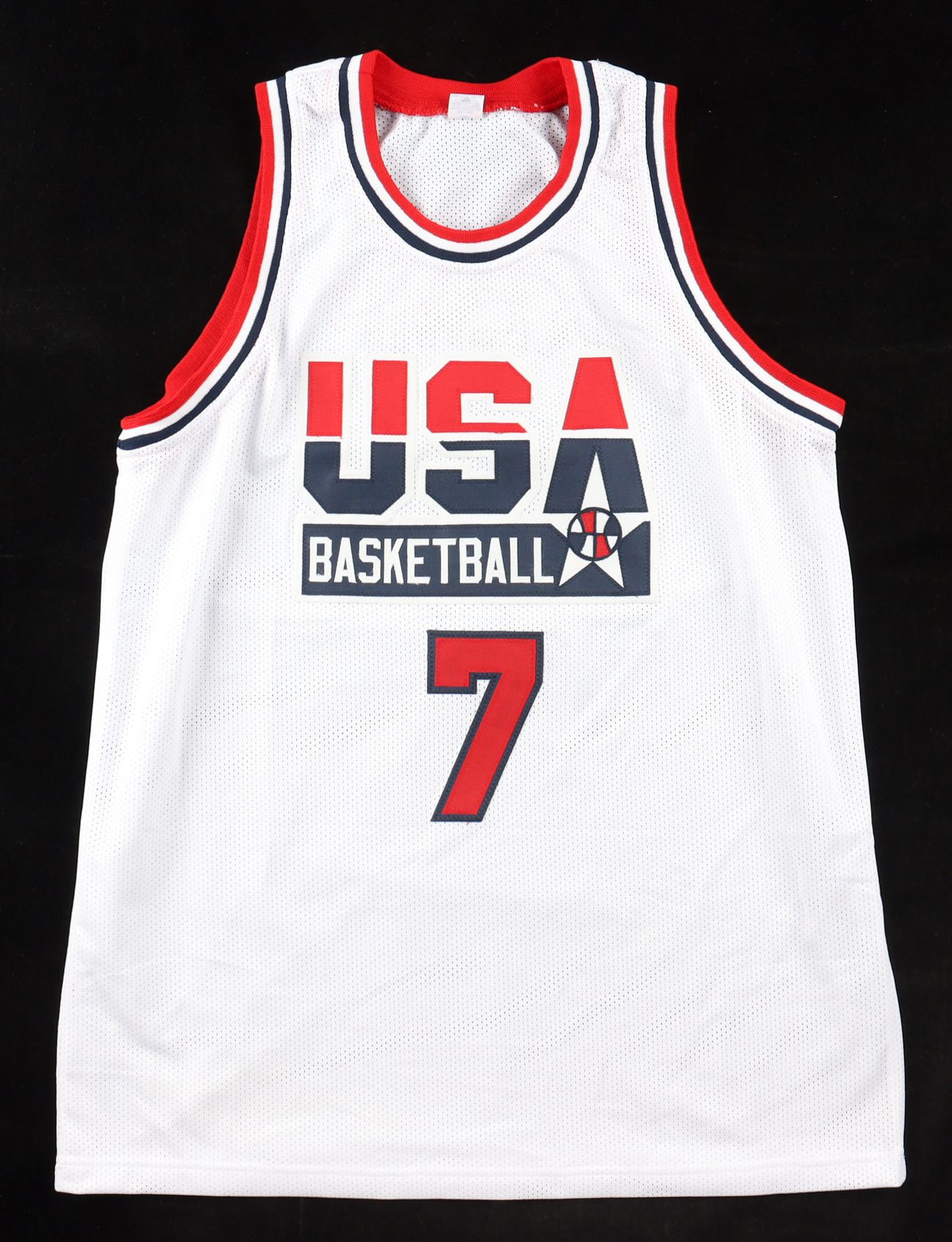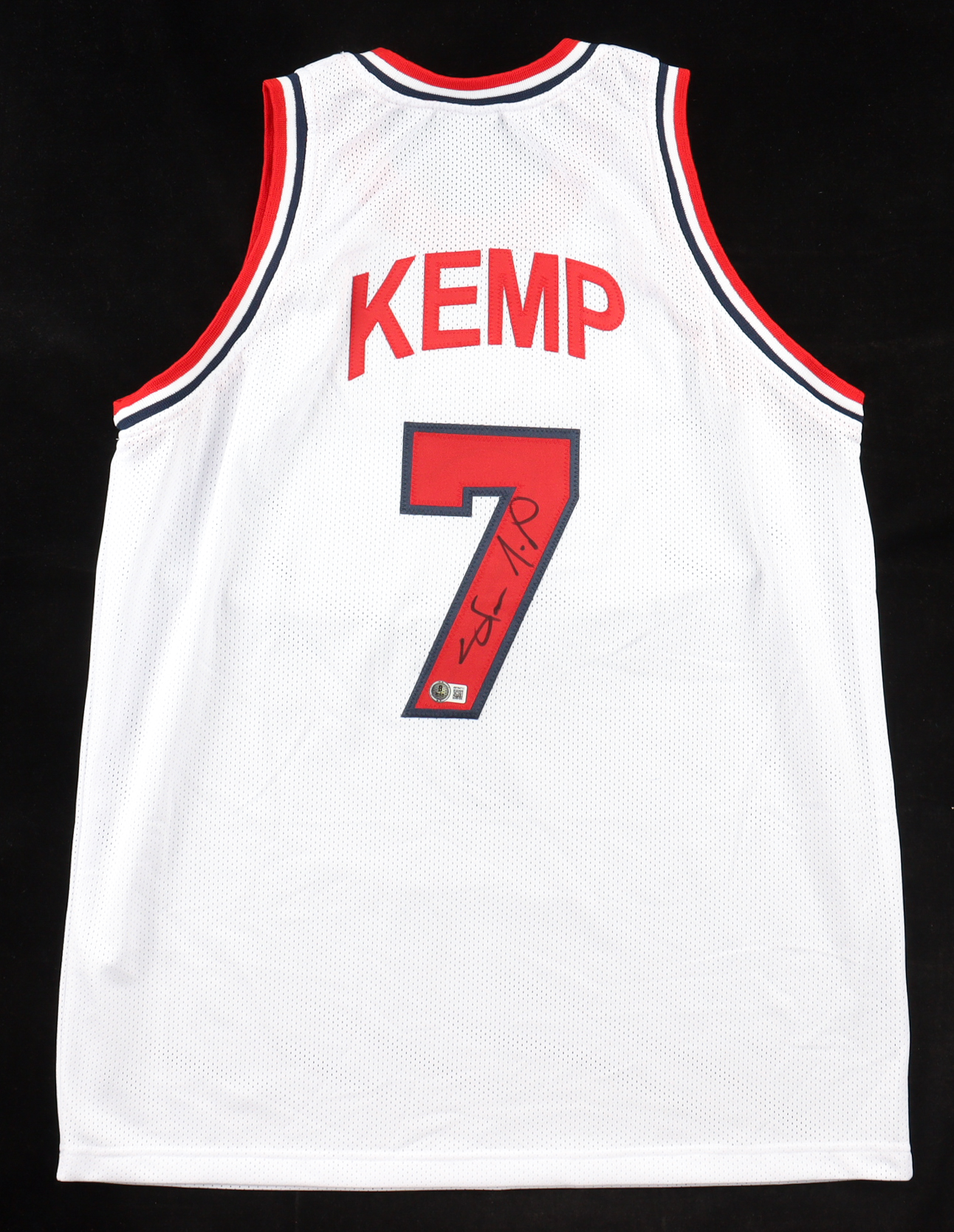 Custom jersey with everything sewn on, size XL. Hand-signed by Shawn Kemp (Team USA).