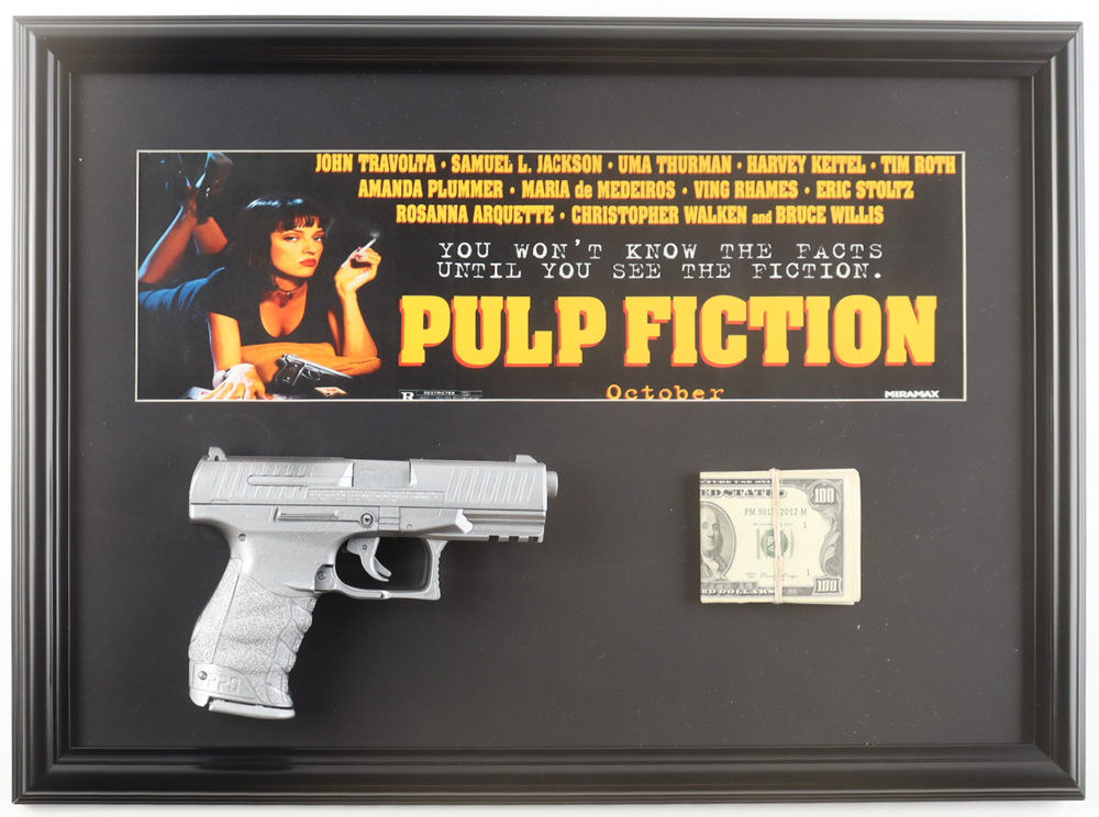 "Pulp Fiction" Custom Framed Photo Display with Prop Pistol & Prop Money Stack
