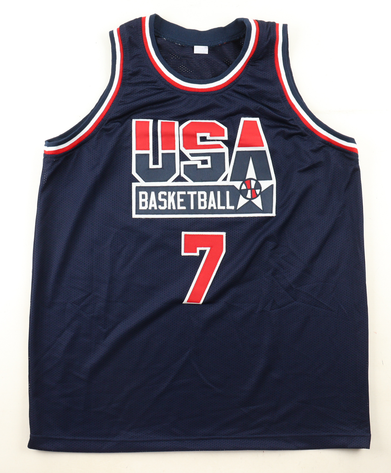 Custom jersey with everything sewn on, size XL. Hand-signed by Shawn Kemp (Team USA).