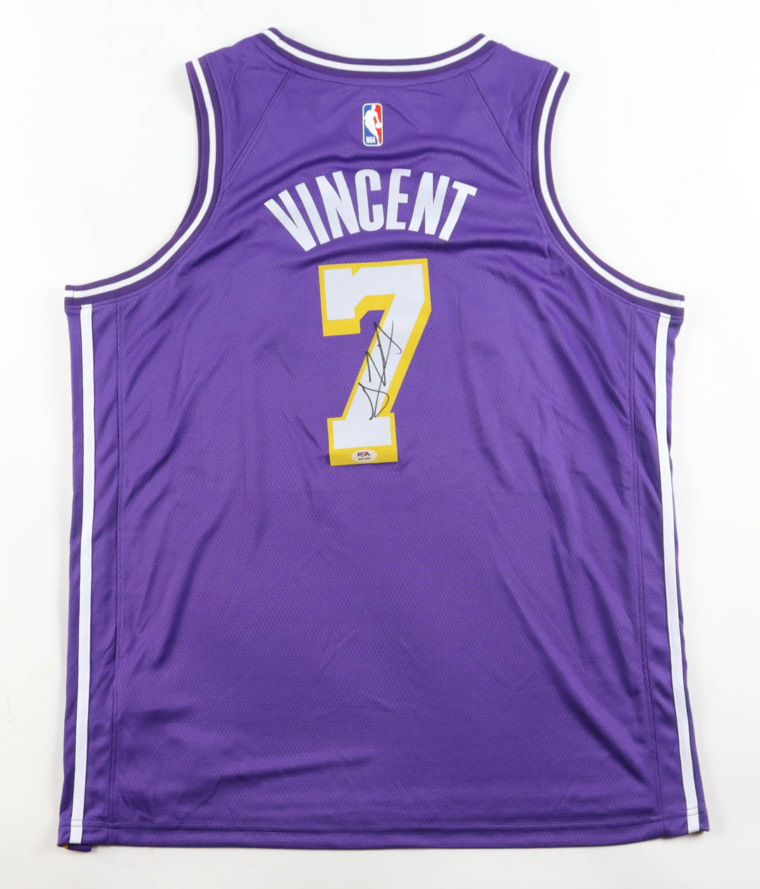 Jordan jersey with everything pressed on, size 52. Hand-signed by Gabe Vincent (Los Angeles Lakers).