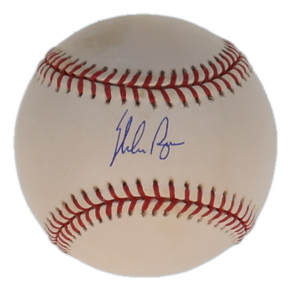 Rawlings Official American League baseball. Hand-signed by Nolan Ryan (Houston Astros, HOF). Please note, the ball is naturally toned and stained throughout.