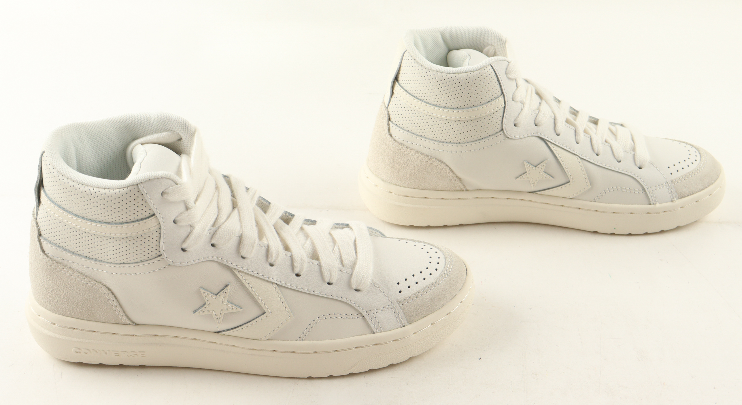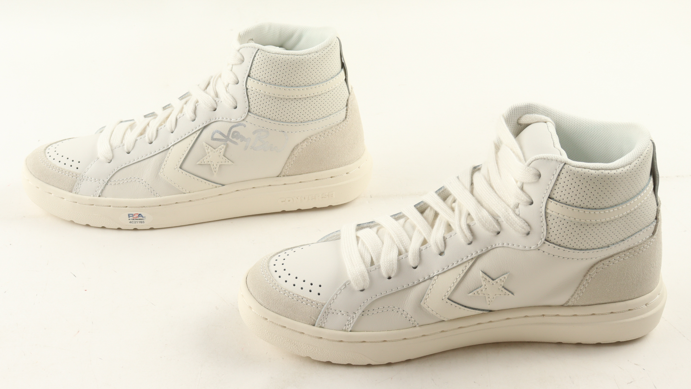 Converse All-Star White Leather Shoes, has been hand-signed by Larry Bird (Boston Celtics, HOF). Display case is included as shown.