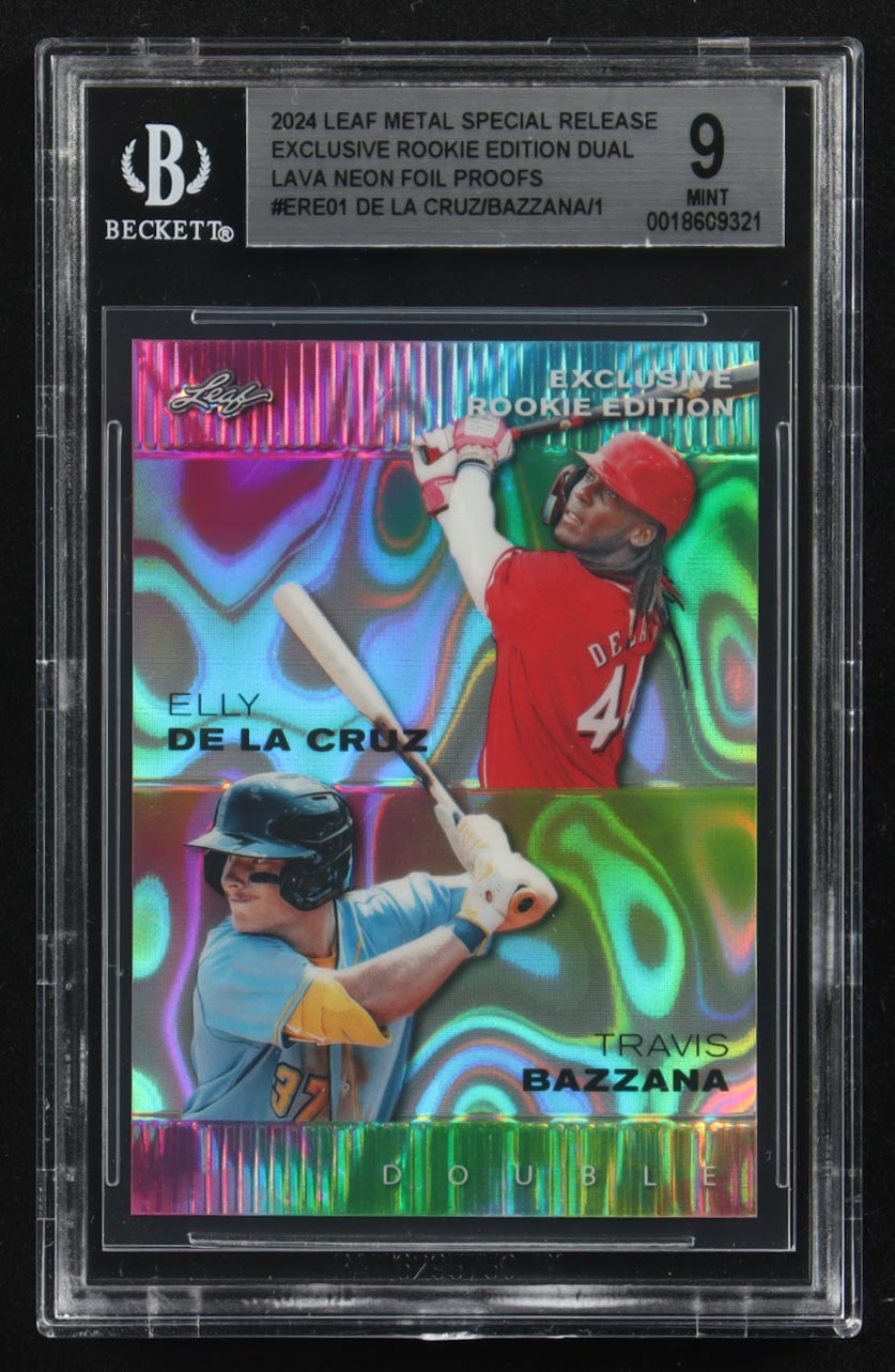 Elly De La Cruz / Travis Bazzana 2024 Leaf Metal Special Release Exclusive Rookie Ed. Dual Lava Neon Foil Proofs #ERE01 RC (BGS 9)