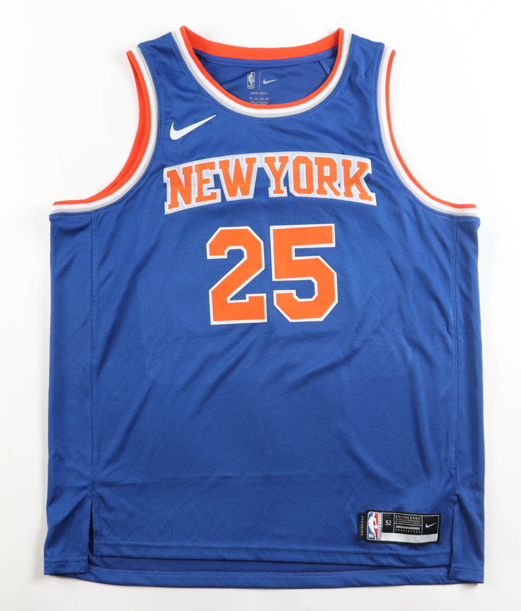 Nike authentic jersey with everything pressed on, size 52. Hand-signed by Mikal Bridges (New York Knicks).