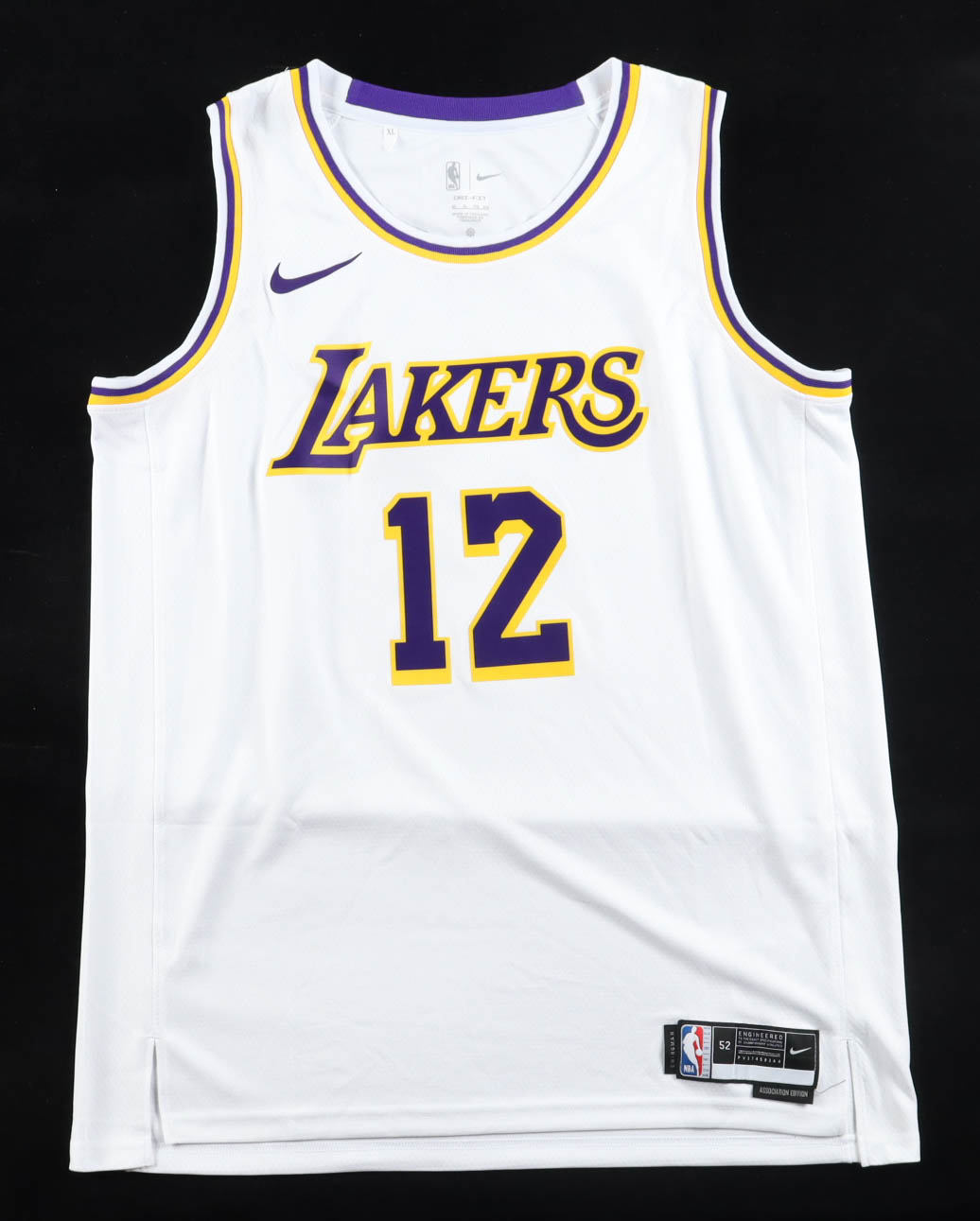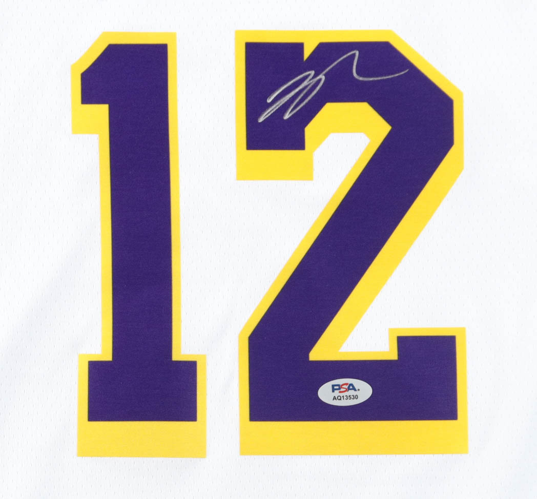 Nike authentic jersey with everything pressed on, size 52. Hand-signed by Jake LaRavia (Los Angeles Lakers).