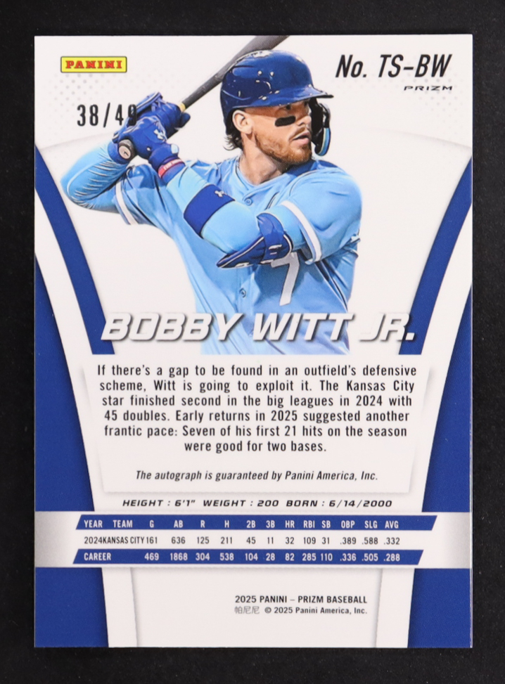 Bobby Witt Jr. 2025 Panini Prizm Throwback Signatures Prizms Blue #10 #38/49