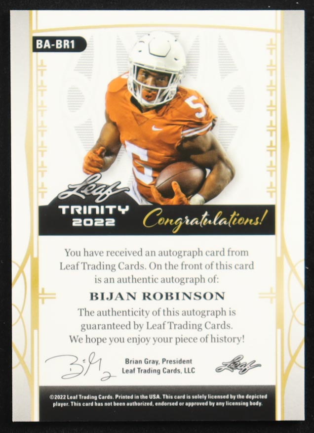 Bijan Robinson 2022 Leaf Trinity Navy #BABR1 RC #33/49