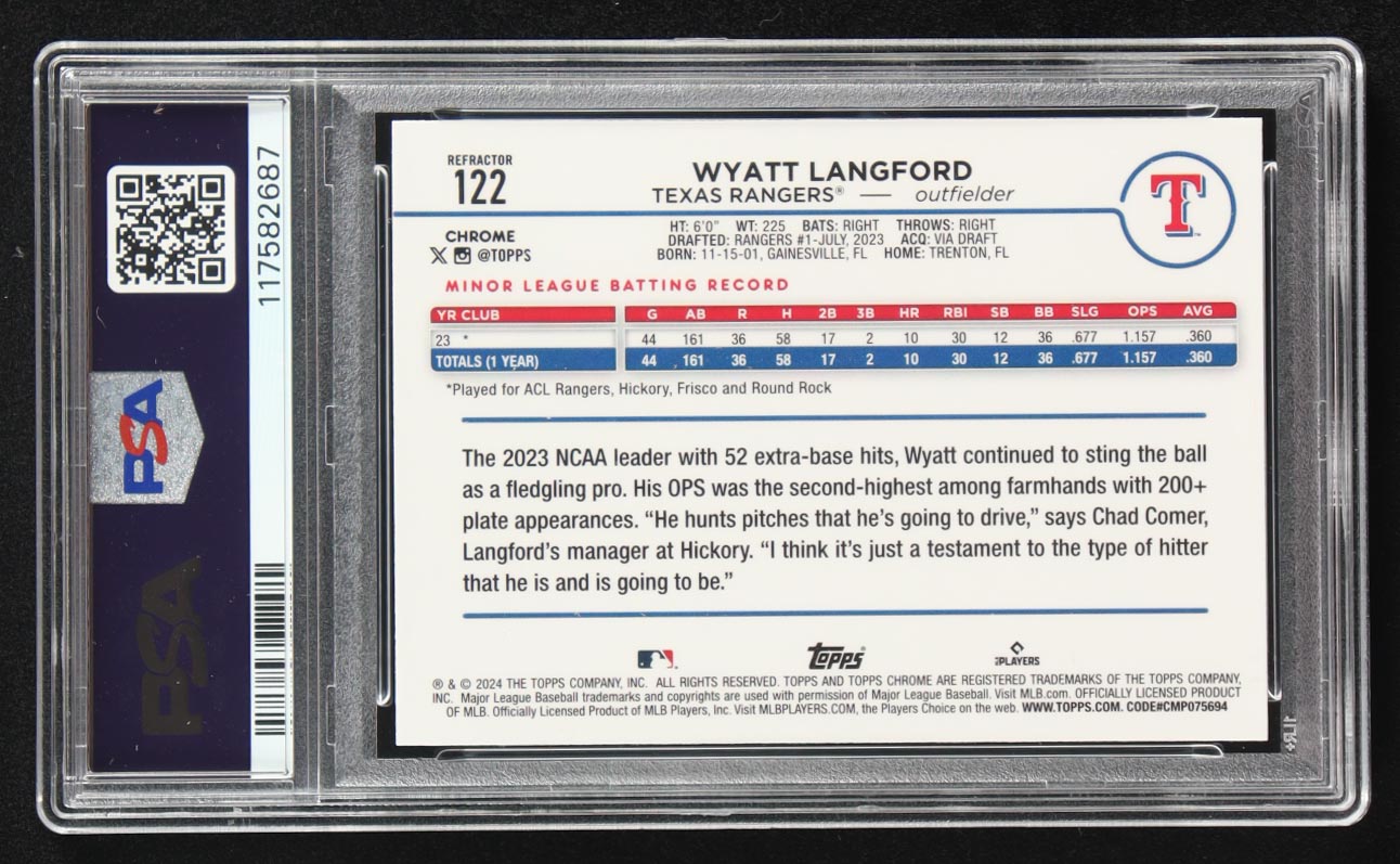 Wyatt Langford 2024 Topps Chrome #122 RC (PSA 8)