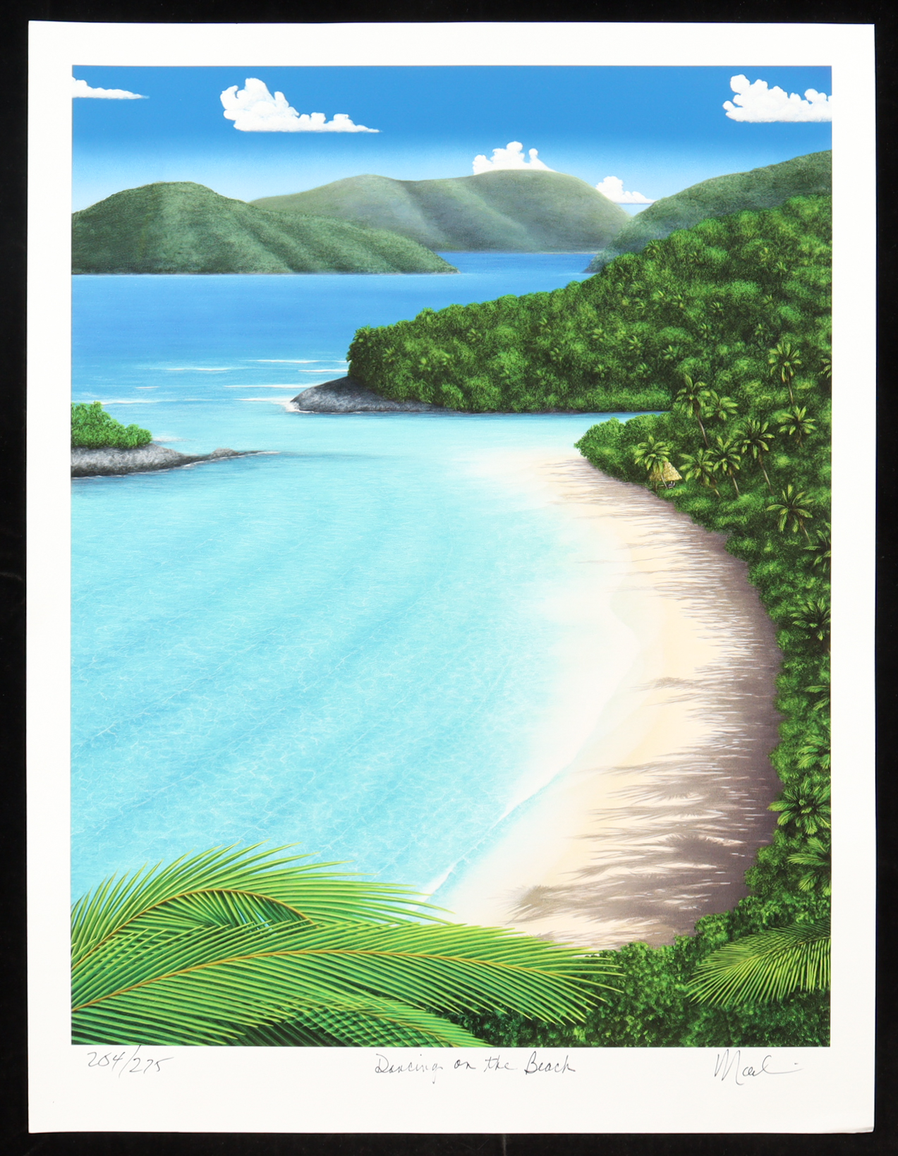 "Dancing on the Beach" measures 19" x 25" and is a limited edition lithograph on paper by Dan Mackin, numbered and hand-signed by the artist. Includes Letter of Authenticity. See photos for more details on the condition of the lithograph.