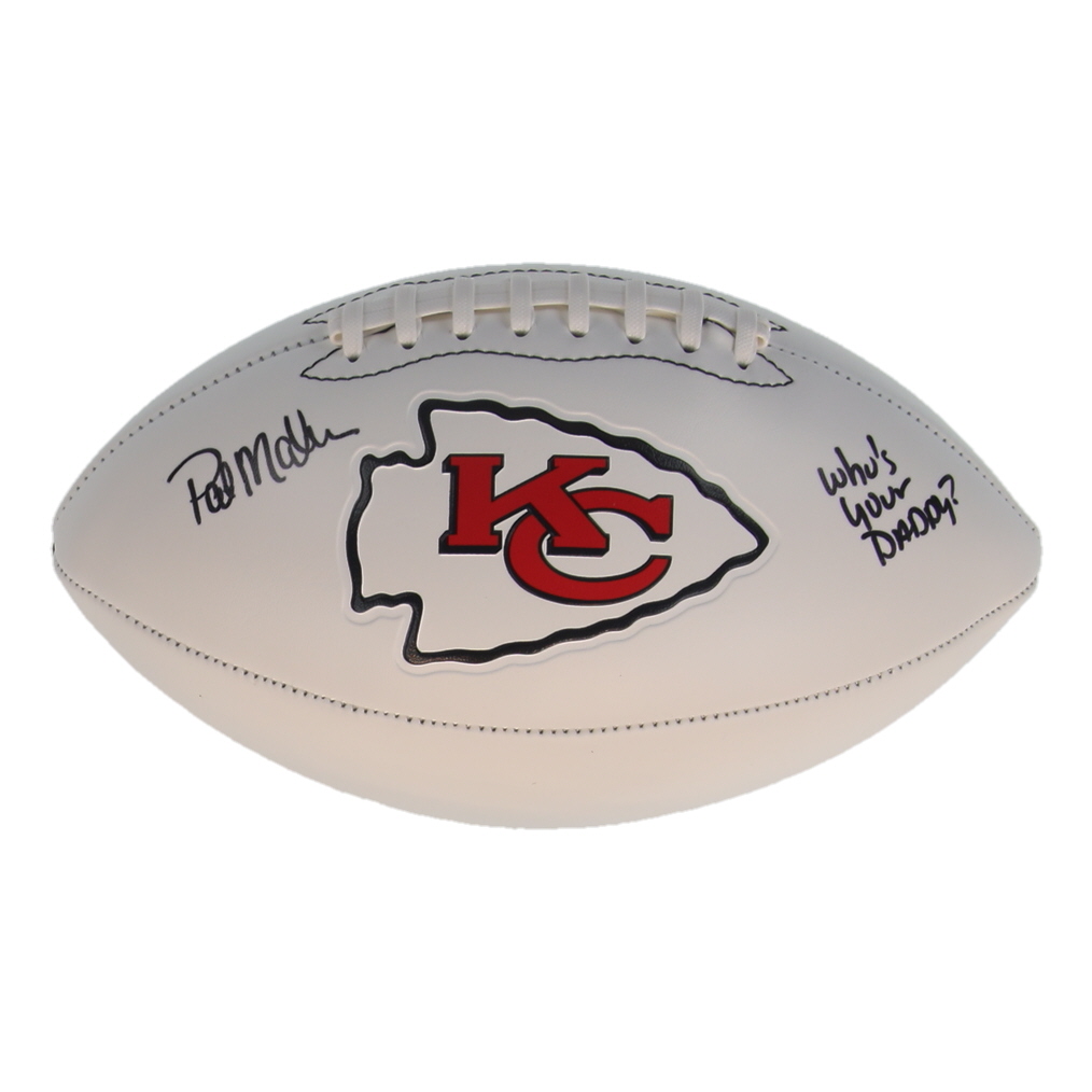 Pat Mahomes Sr. Signed Chiefs Logo Football Inscribed "Who's Your Daddy?" (Schwartz)