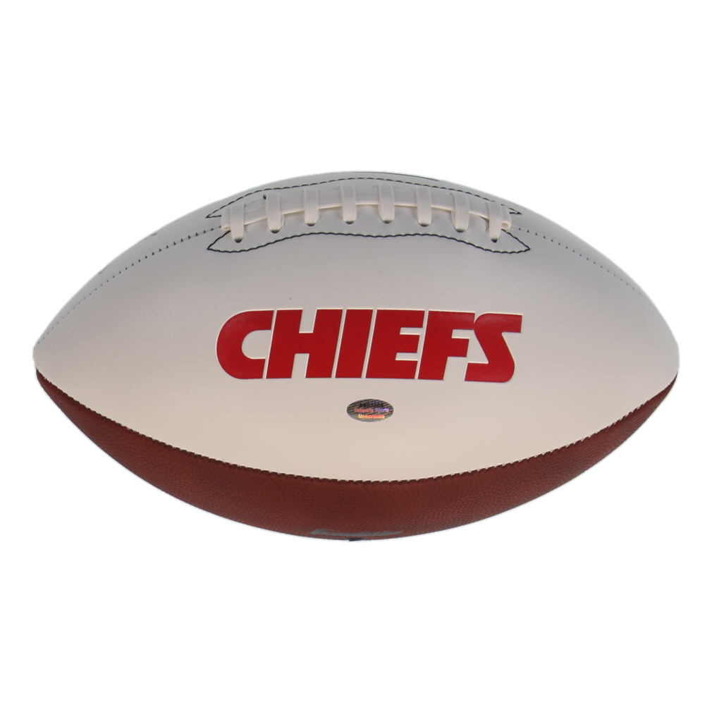 Franklin Kansas City Chiefs logo football has been hand-signed and inscribed by Pat Mahomes Sr.