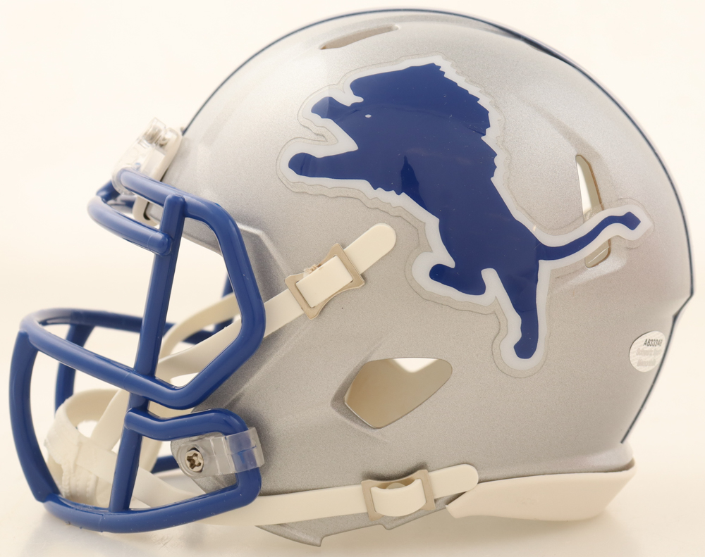 Riddell Detroit Lions Throwback Alternate Speed Mini Helmet. Hand-signed by Barry Sanders (HOF).