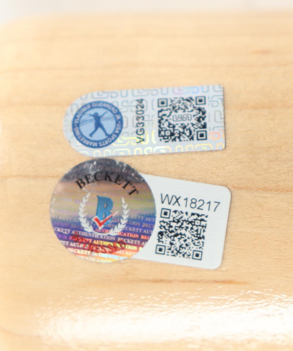 The lot / autograph(s) includes an official USA Sports Marketing Vladimir Guerrero Jr. hologram, as well as an official Beckett Authentication Services serially numbered hologram for authenticity purposes. The signing of this item was witnessed by Beckett.