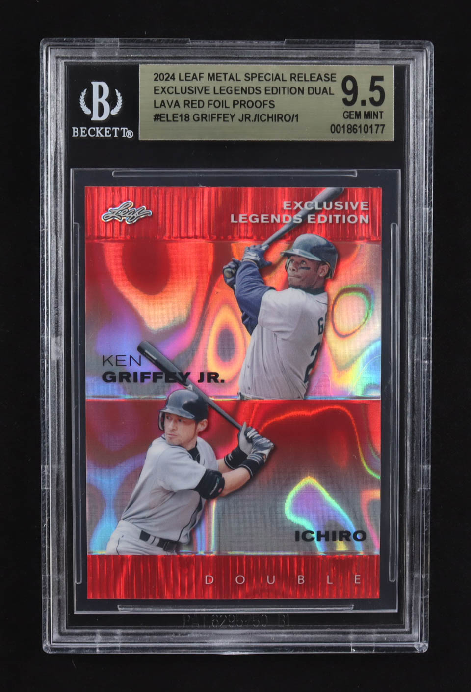 Ken Griffey Jr. / Ichiro Suzuki 2024 Leaf Metal Special Release Exclusive Legends Ed. Dual Lava Red Foil Proofs #ELE18 #1/1 (BGS 9.5)