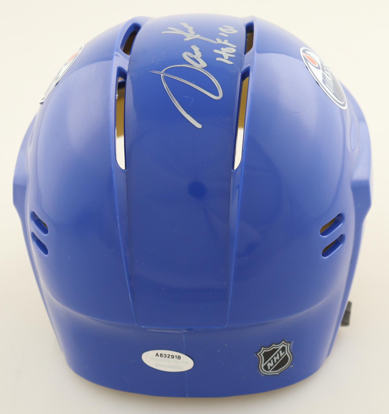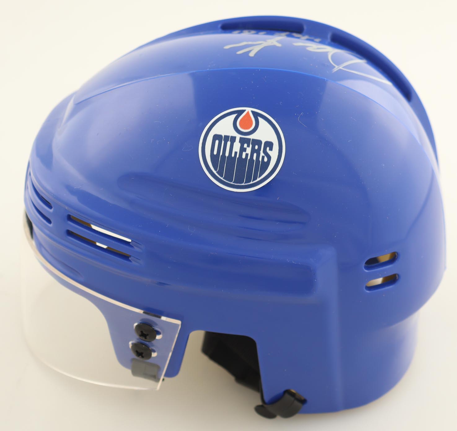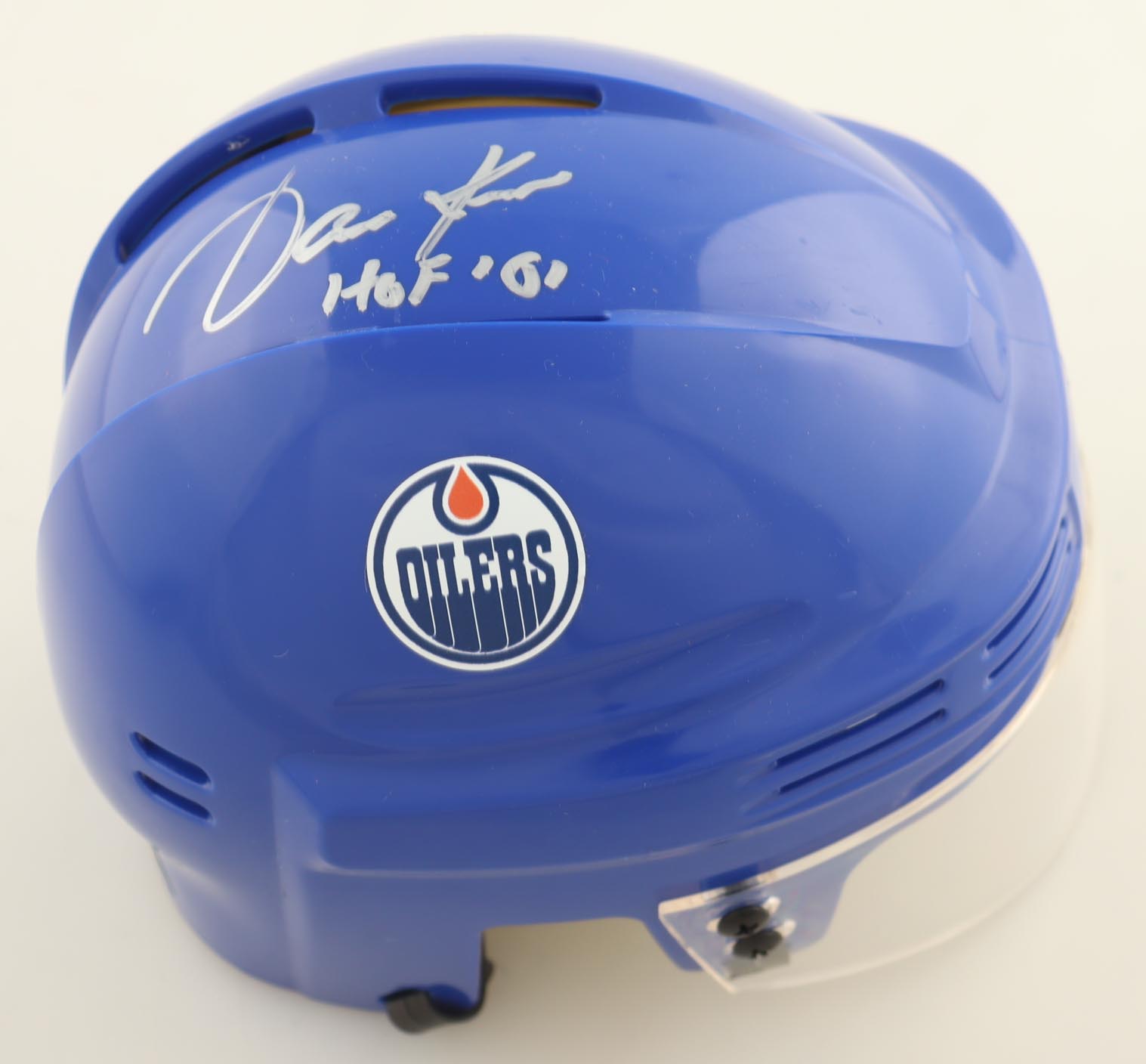Edmonton Oilers mini helmet has been hand-signed and inscribed by Jari Kurri (HOF).