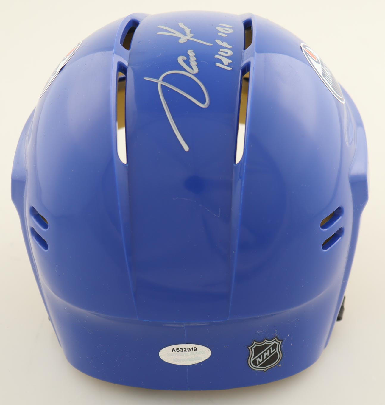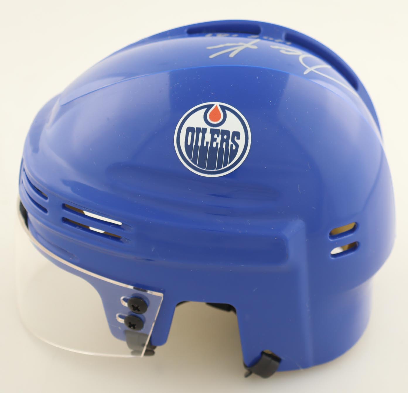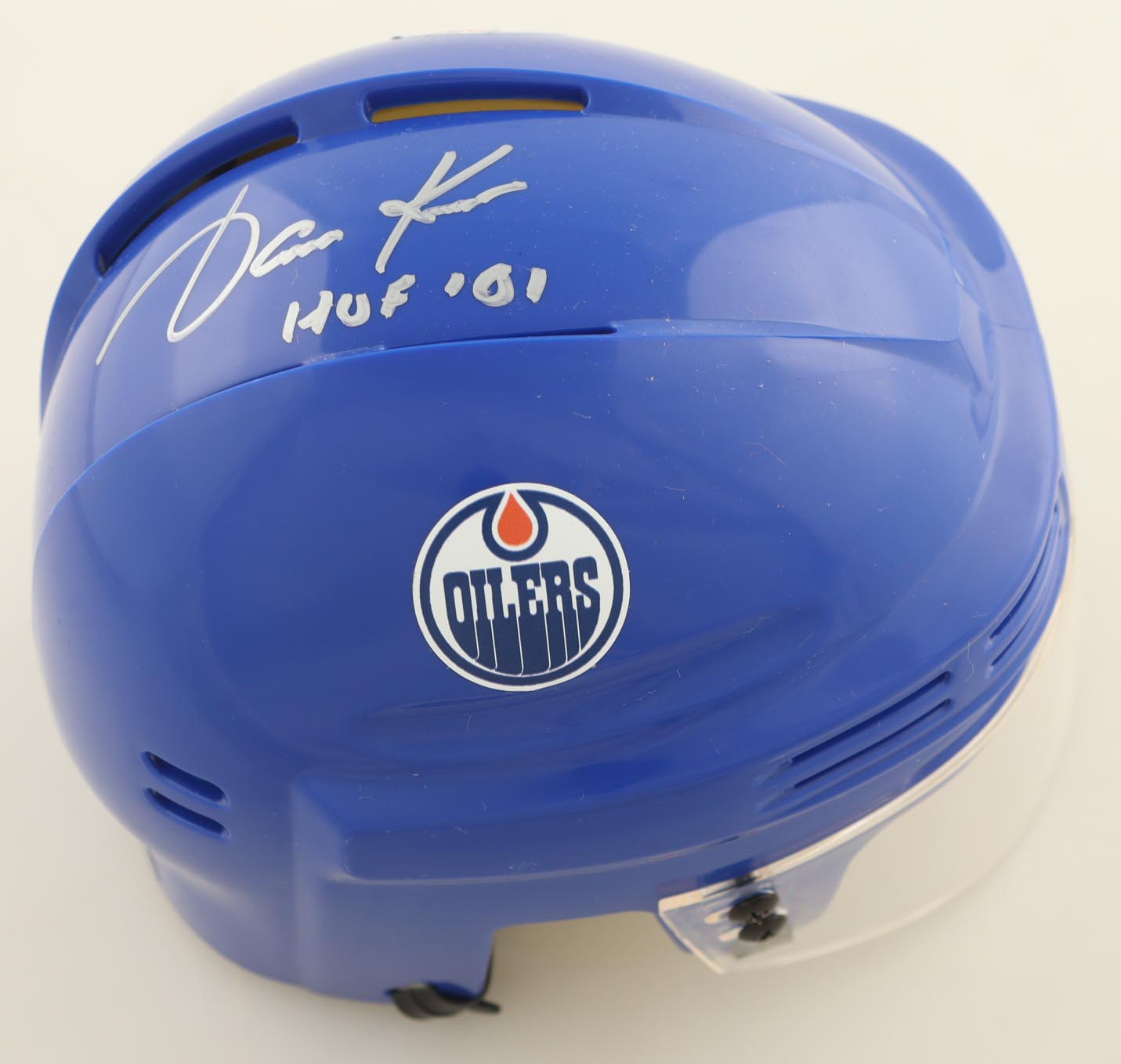 Edmonton Oilers mini helmet has been hand-signed and inscribed by Jari Kurri (HOF).