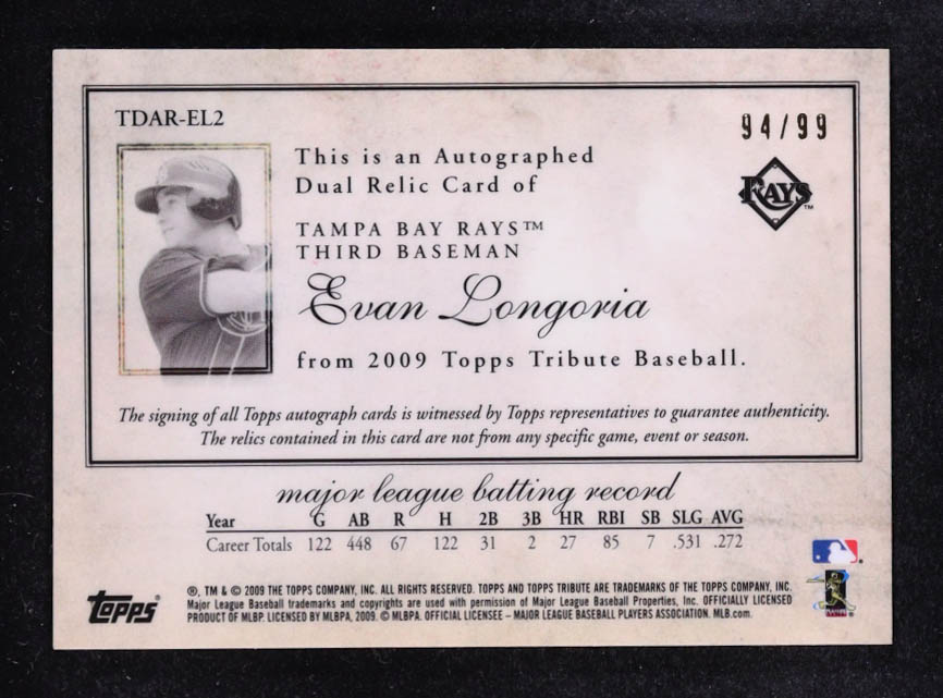 Evan Longoria 2009 Topps Tribute Autograph Dual Relics #EL2 #94/99