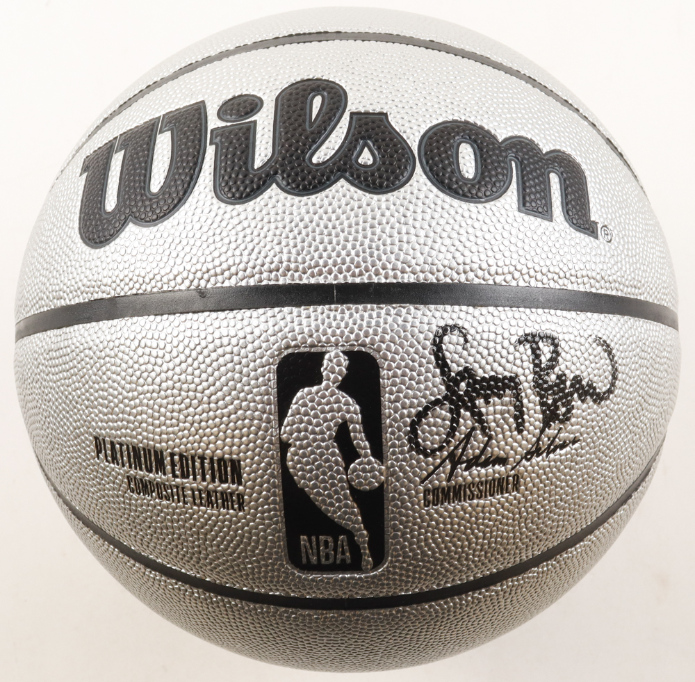 Wilson Platinum Edition NBA basketball. Hand-signed by Larry Bird (Boston Celtics, HOF). Display a full Larry Bird career statistics plaque. Includes display stand as shown. Please refer to photos regarding the condition of the item.