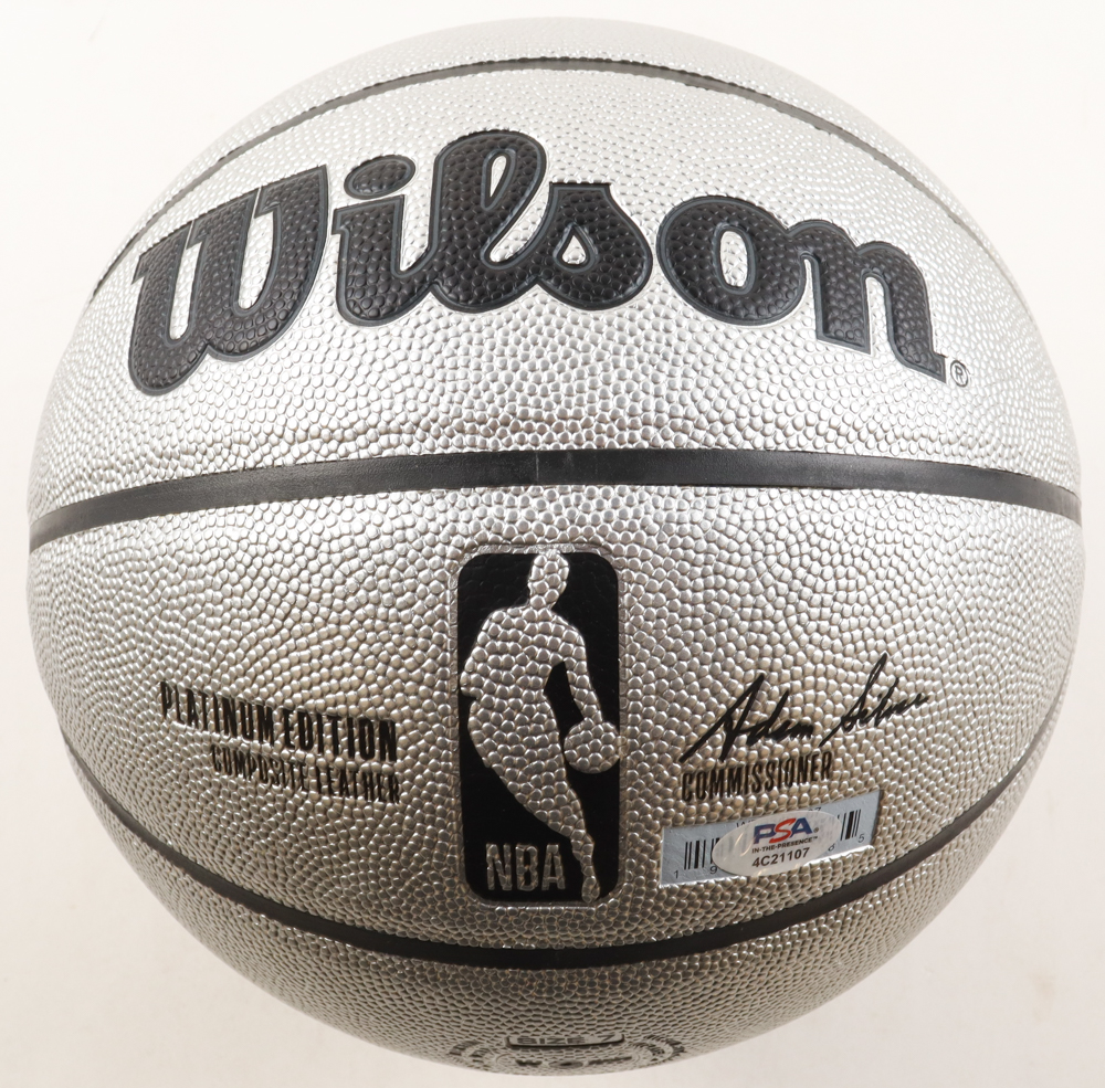 Larry Bird Signed NBA Platinum Edition Basketball with Display Stand & Stat Plaque (PSA)