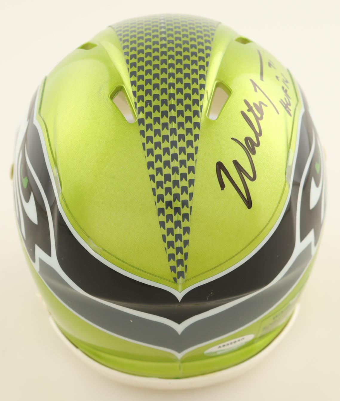 Riddell Seattle Seahawks Flash Alternate Speed mini helmet has been hand-signed and inscribed by Walter Jones (HOF).