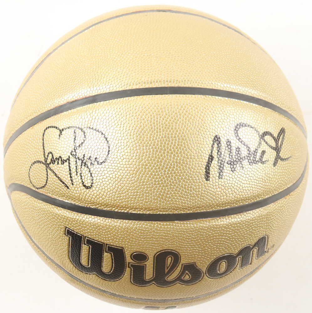 Wilson Gold Edition NBA Basketball. Hand-signed by Magic Johnson (Los Angeles Lakers, HOF) and Larry Bird (Boston Celtics, HOF). The display case is included as shown.