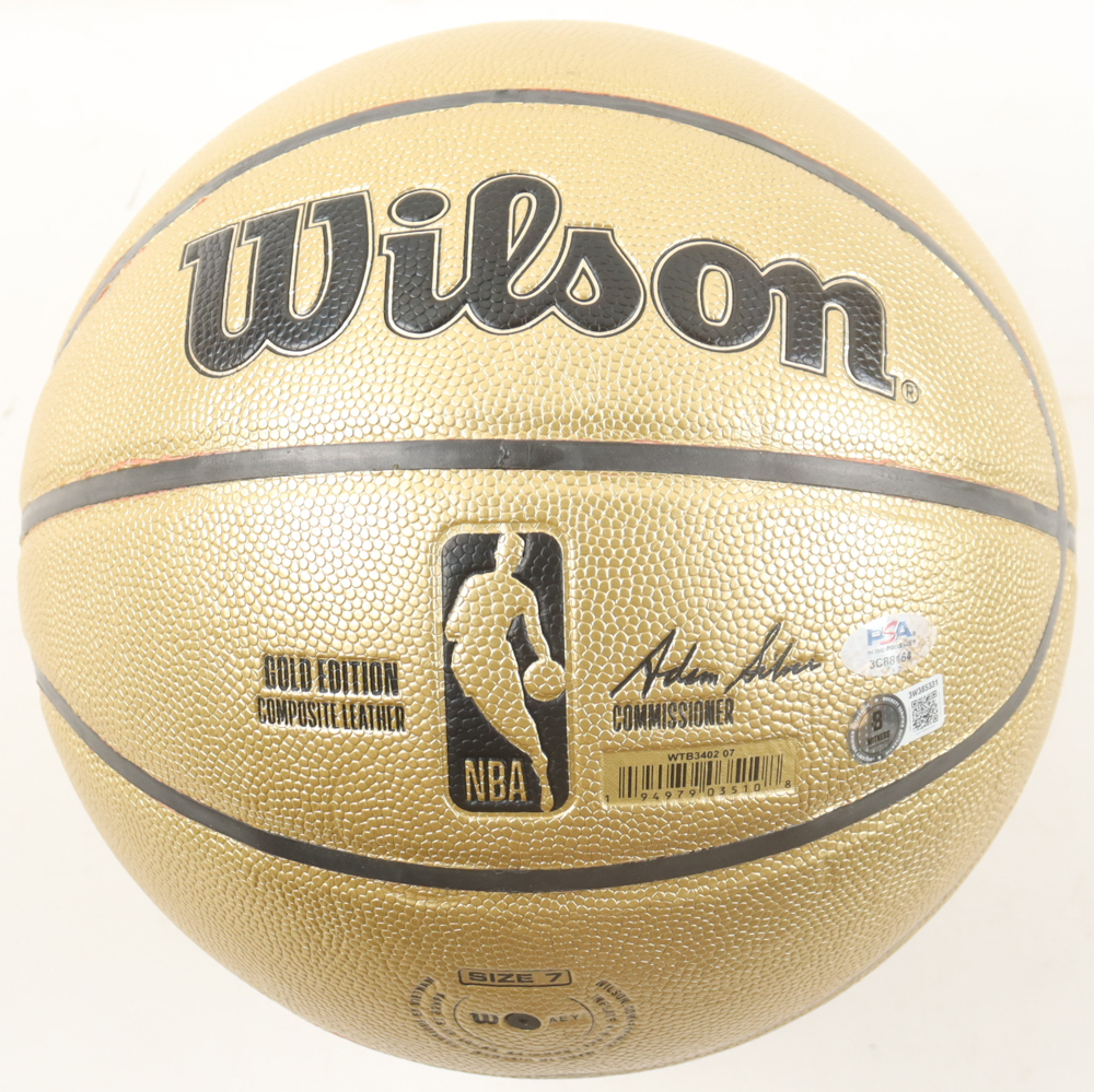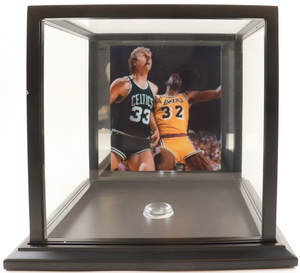 Magic Johnson & Larry Bird Signed NBA Gold Edition Basketball with Display Case (PSA & Beckett)