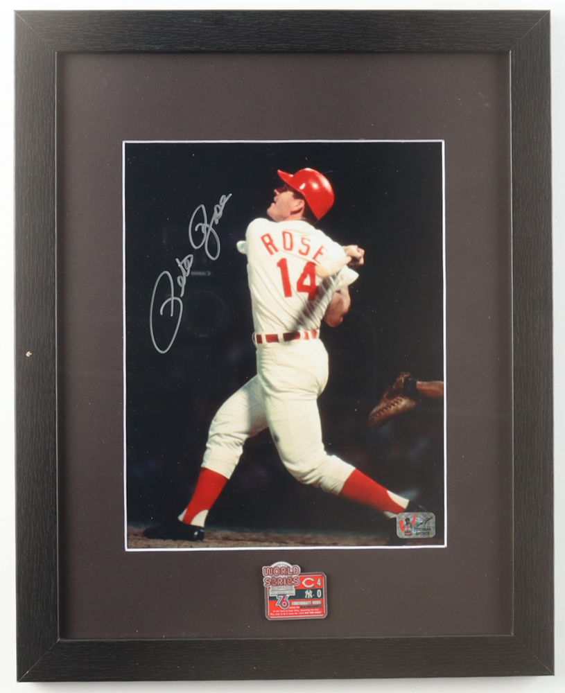 Pete Rose Signed Reds Custom Framed Photo Display With World Series Pin (Fiterman)