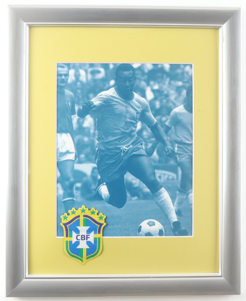 Pele Custom Framed Photo Display With Brazil National Patch