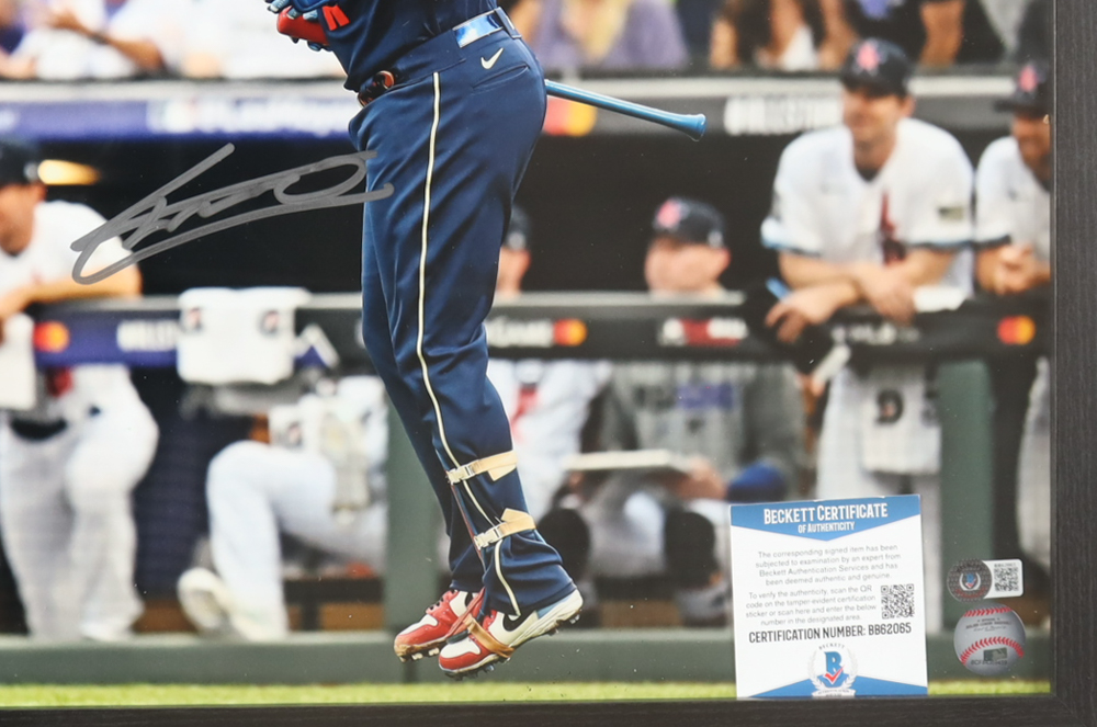 Custom frame measures approximately 18" x 22" in size. The display features a photo that has been hand-signed by Vladimir Guerrero Jr. (Toronto Blue Jays). Please refer to photo regarding the condition of the item.