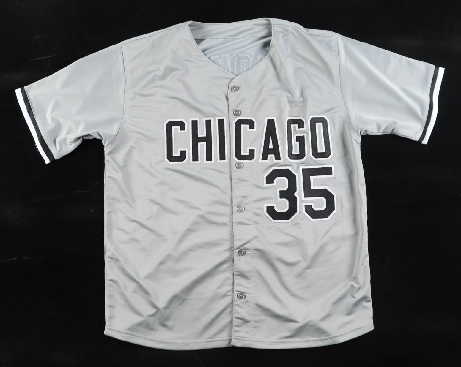 Custom jersey with everything sewn on, size XL. Hand-signed and inscribed by Frank Thomas (HOF).