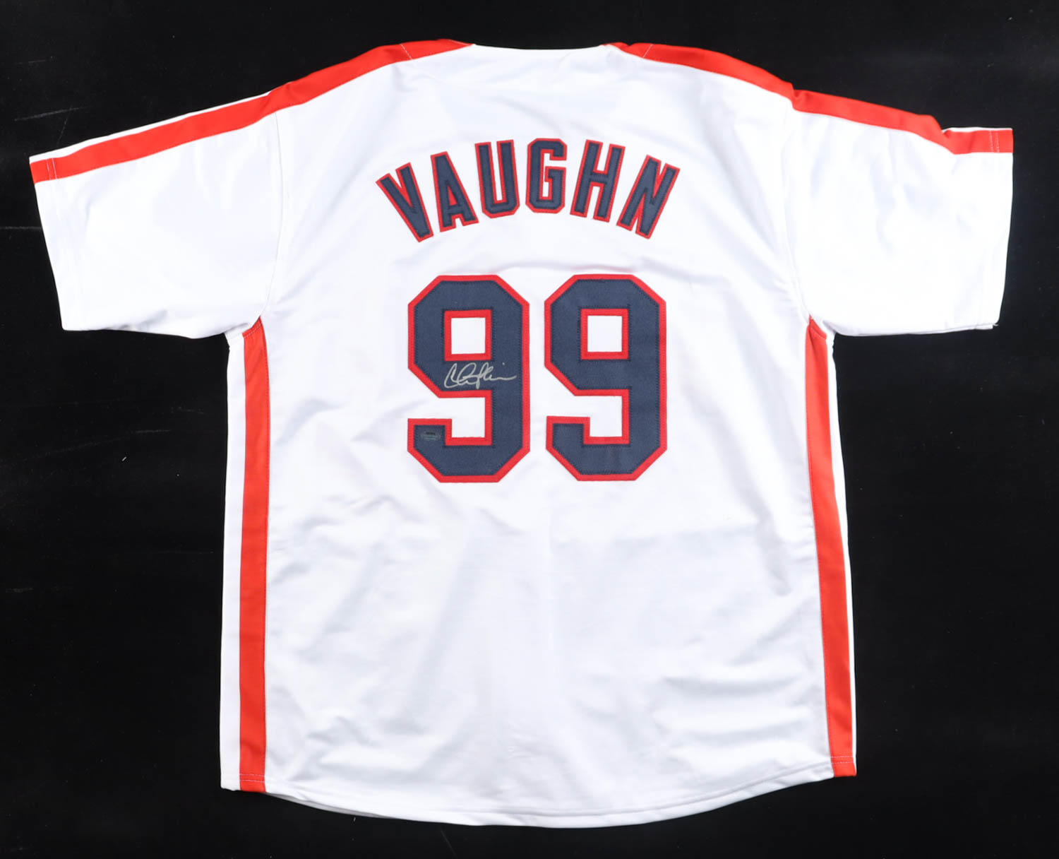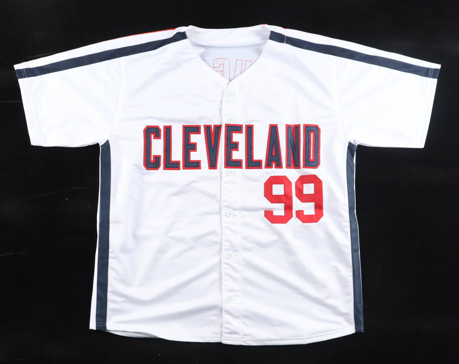 Custom jersey with everything sewn on, size XL. Hand-signed by Charlie Sheen (Ricky "Wild Thing" Vaughn).