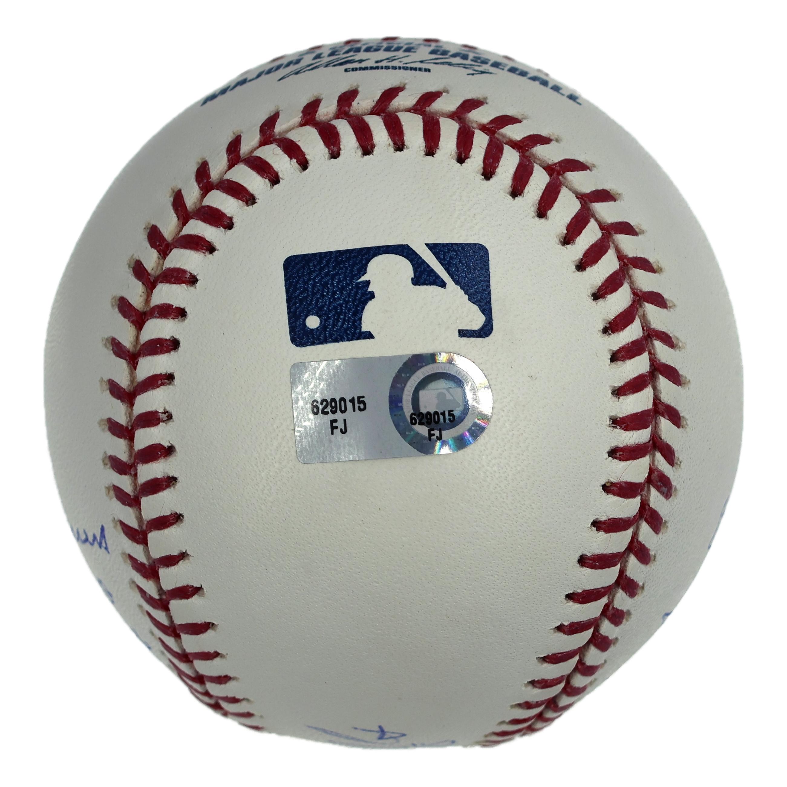 Rawlings Official American League baseball has been hand-signed and inscribed by Don Larsen (D.2020, New York Yankees), David Wells (New York Yankees), David Cone (New York Yankees) and Domingo German (New York Yankees).
