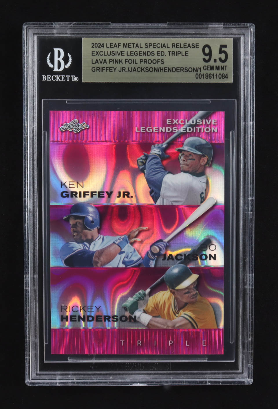 Ken Griffey Jr. / Bo Jackson / Rickey Henderson 2024 Leaf Metal Special Release Exclusive Legends Ed. Triple Lava Pink Foil Proofs (BGS 9.5)