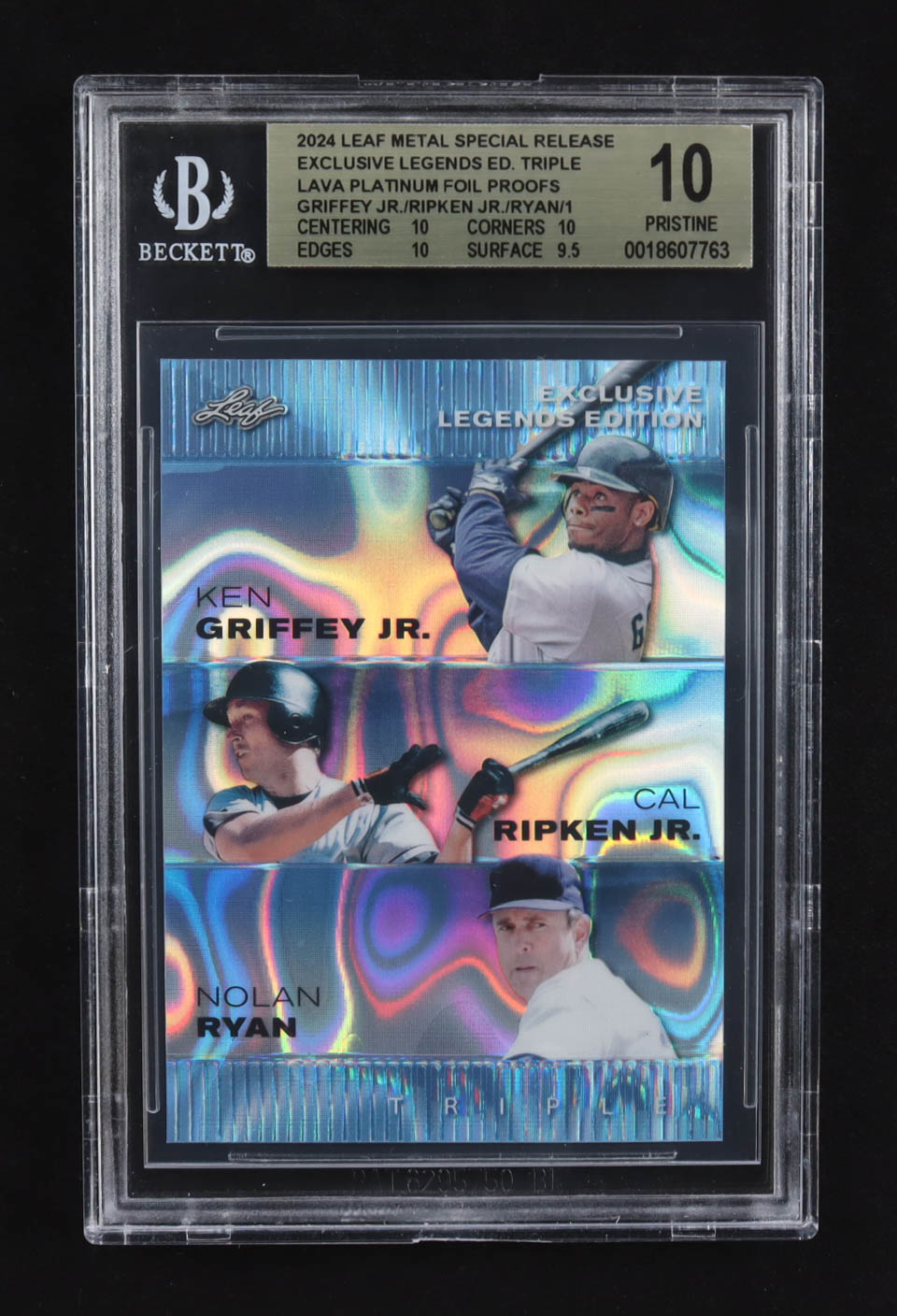 Ken Griffey Jr. / Cal Ripken Jr. / Nolan Ryan 2024 Leaf Metal Special Release Exclusive Legends Ed. Triple Lava Platinum Foil Proofs (BGS 10)