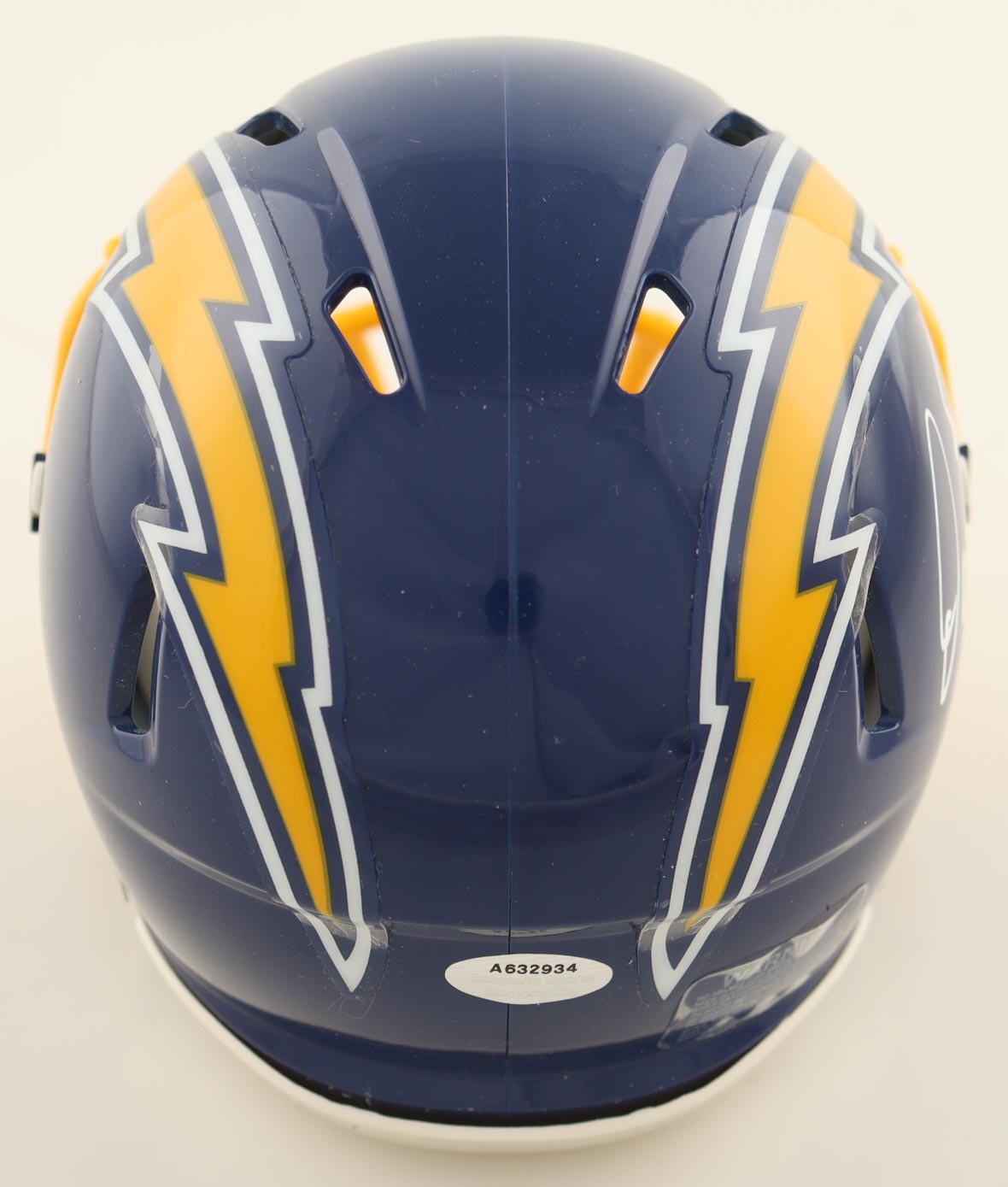 Riddell San Diego Chargers Throwback Alternate Speed mini helmet. Hand-signed by Dan Fouts (HOF).