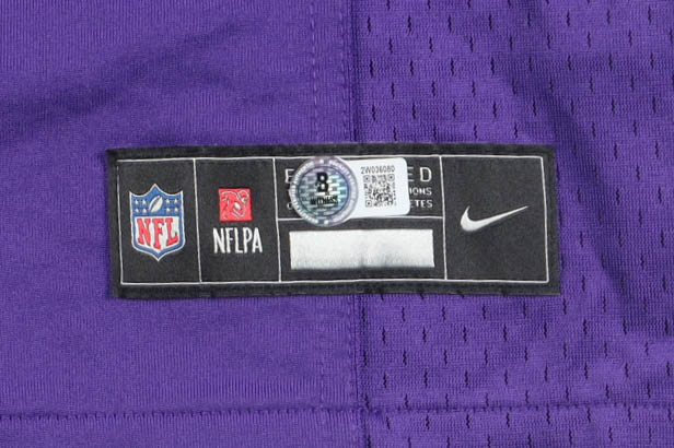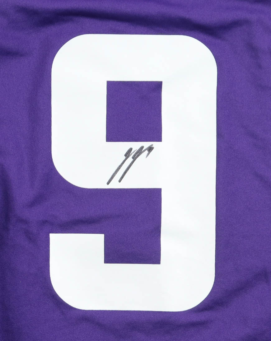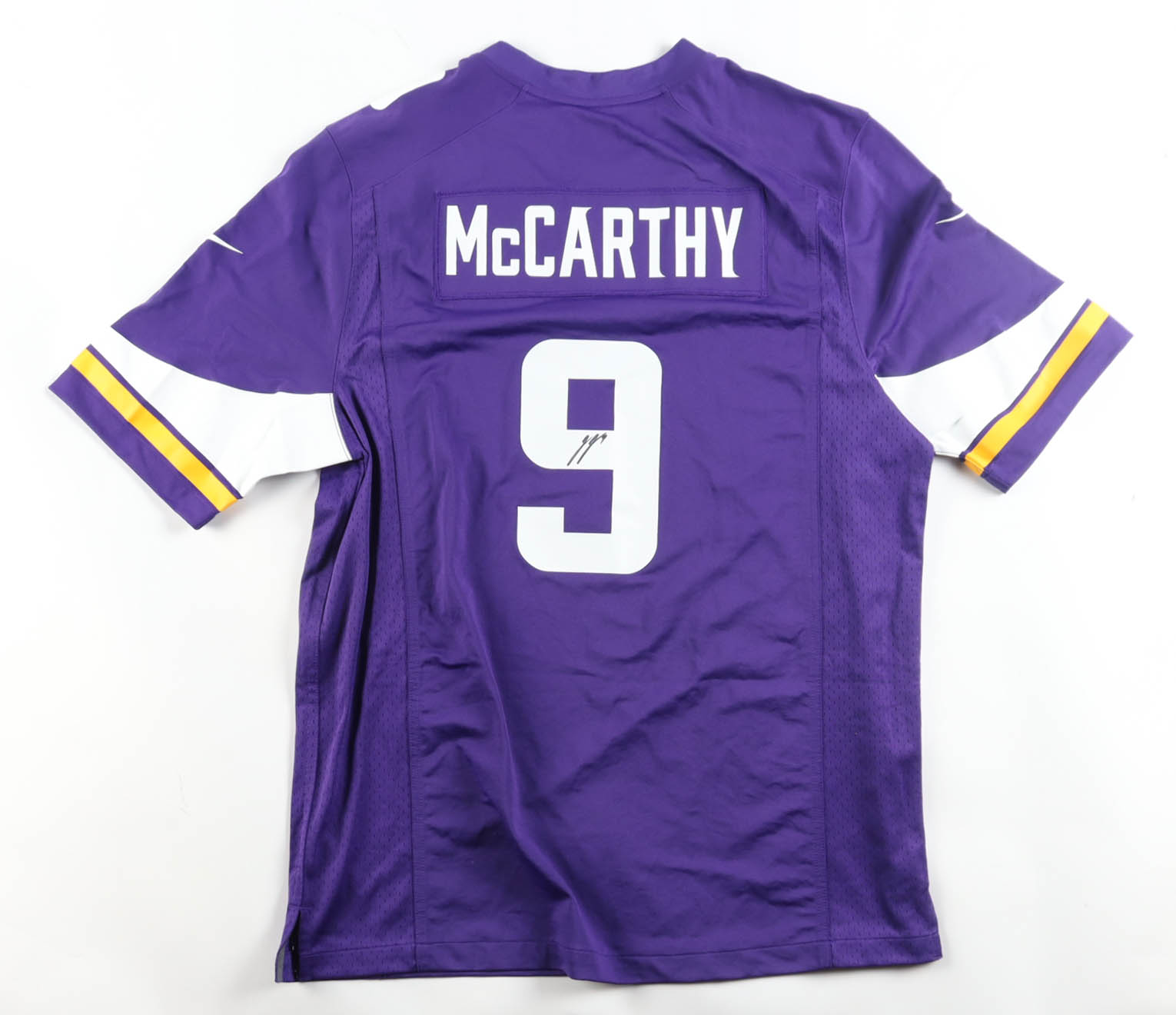 Nike jersey with everything pressed on, size XL. Hand-signed by J.J. McCarthy (Minnesota Vikings).