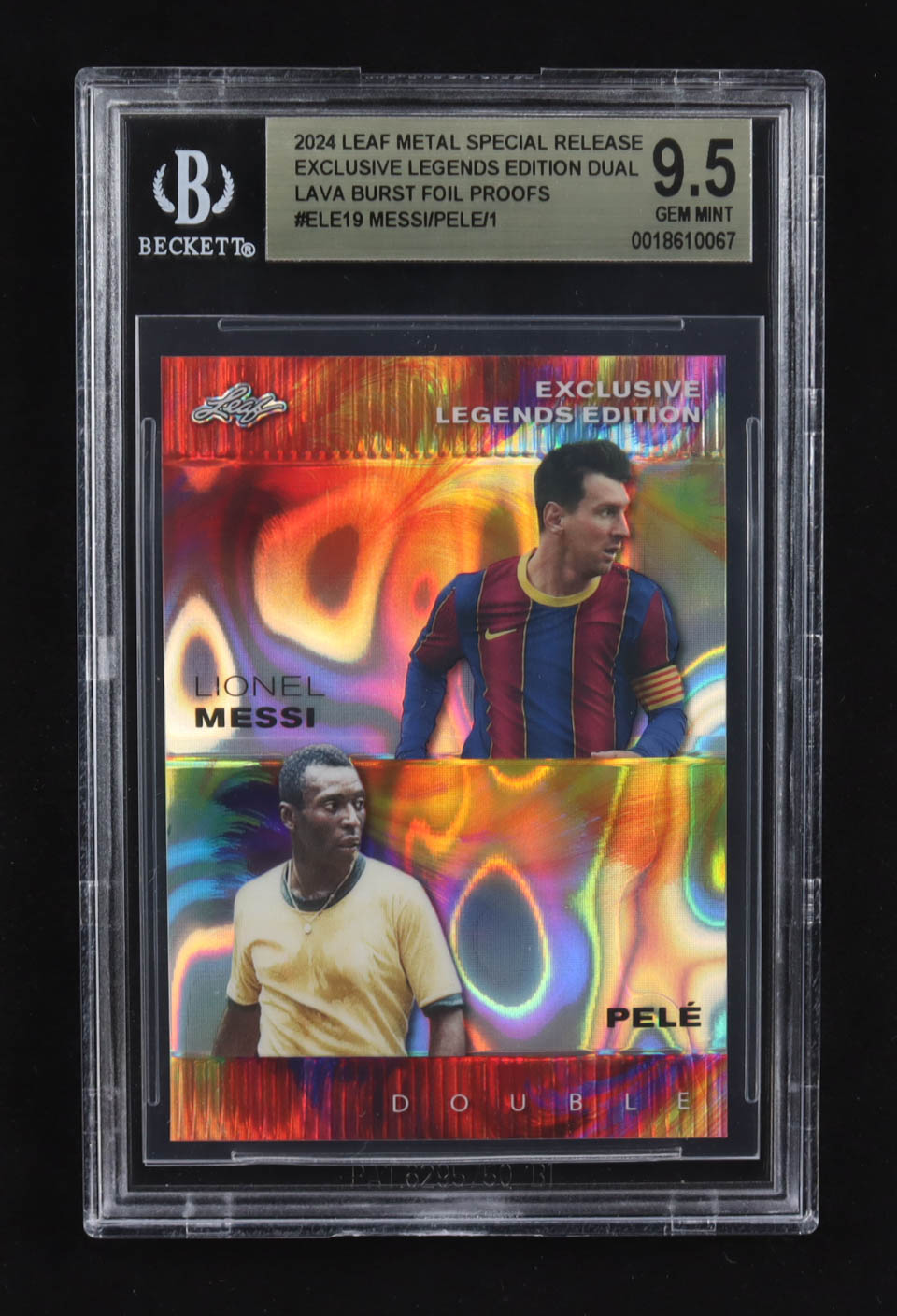 Lionel Messi / Pele 2024 Leaf Metal Special Release Exclusive Legends Ed. Dual Lava Burst Foil Proofs #ELE19 (BGS 9.5)