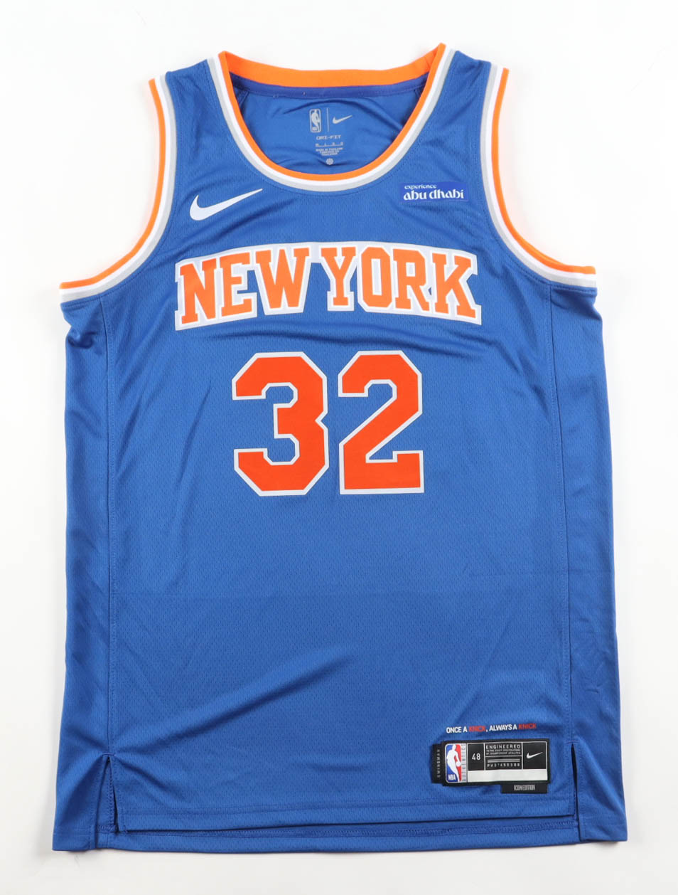 Nike authentic jersey with everything pressed on, size 48. Hand-signed by Karl-Anthony Towns (New York Knicks).