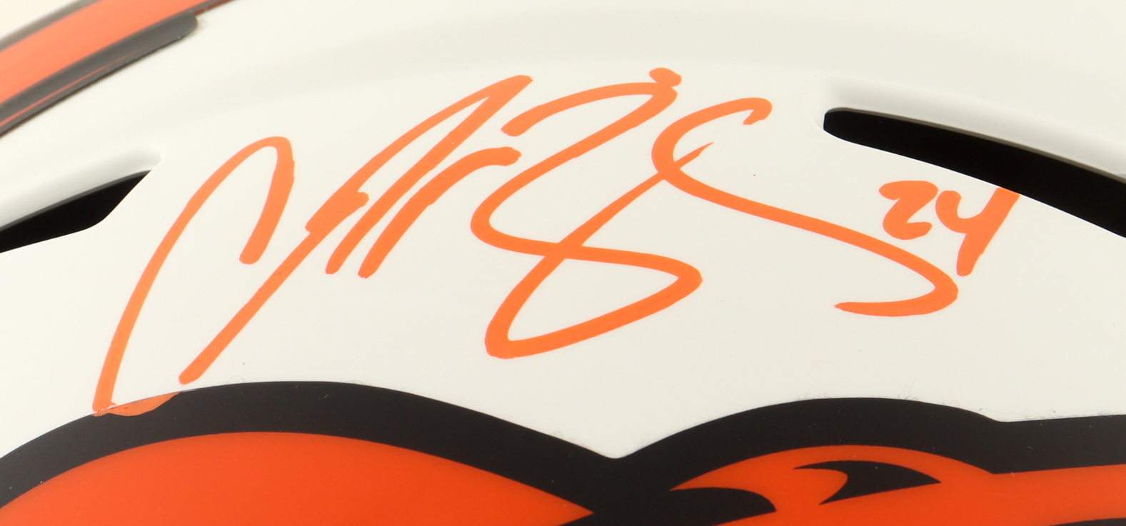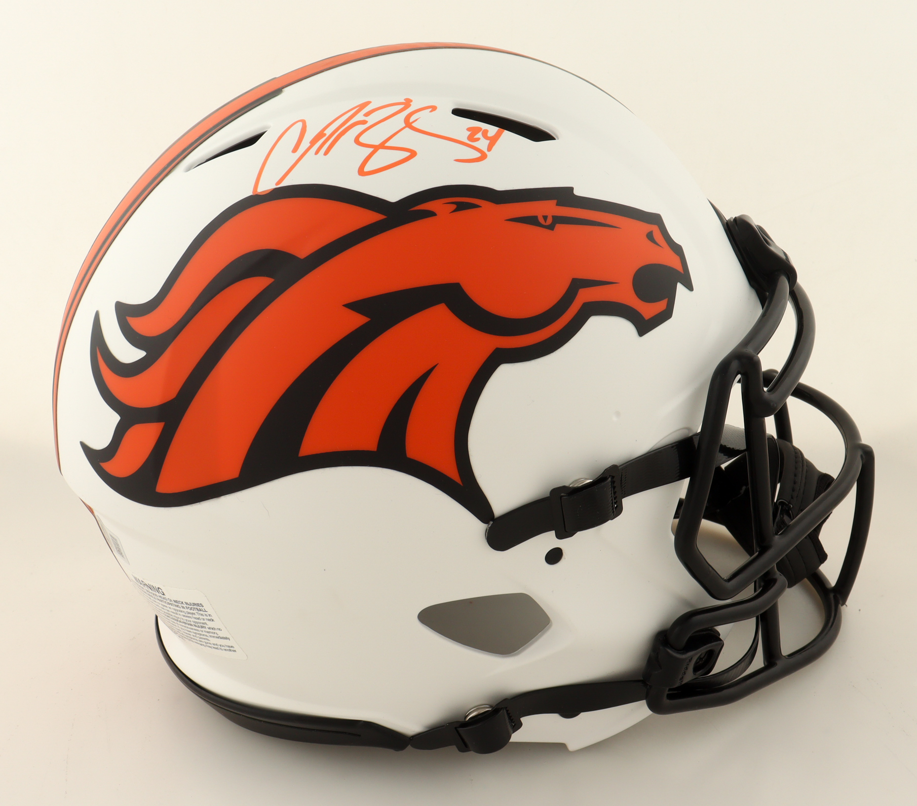 Riddell Denver Broncos full-size authentic, on-field Lunar Eclipse Alternate Speed helmet. Hand-signed by Champ Bailey (HOF).