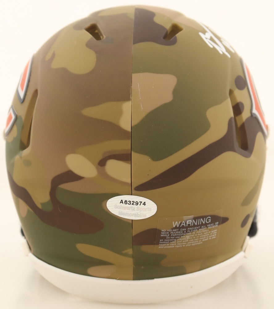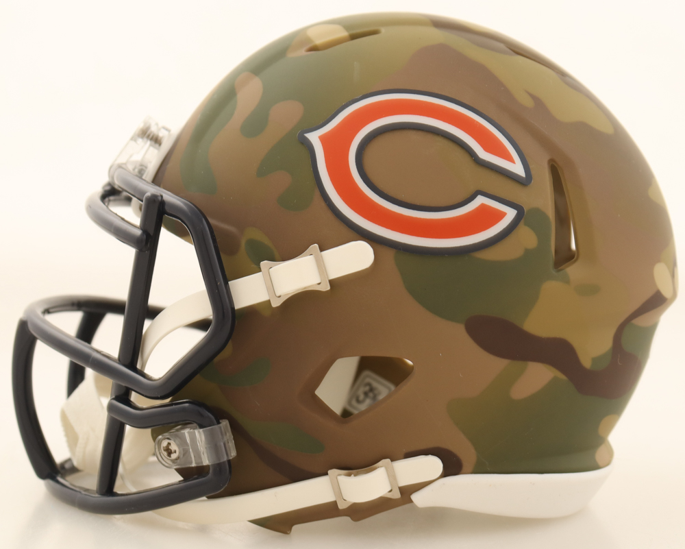 Riddell Chicago Bears Camo Alternate Speed Mini Helmet. Hand-signed and inscribed by Brian Urlacher (HOF).