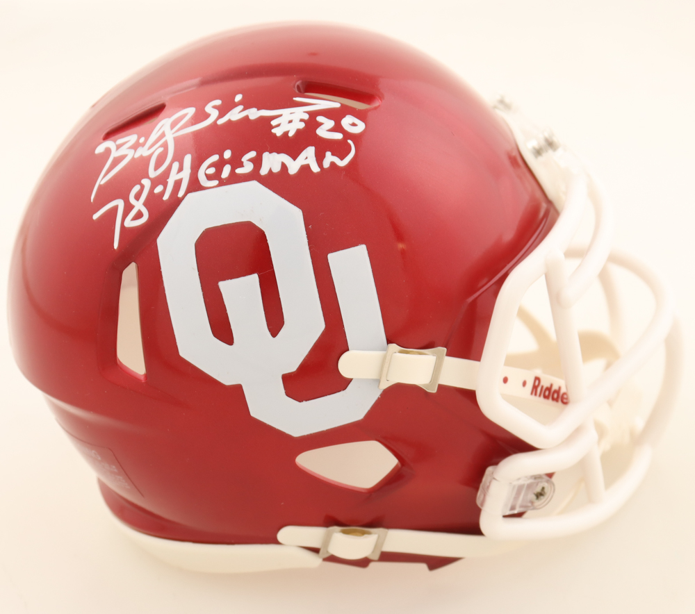 Riddell Oklahoma Sooners Speed Mini Helmet. Hnd-signed and inscribed by Billy Sims.