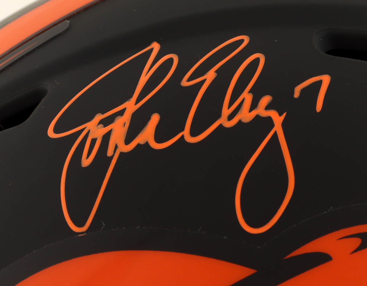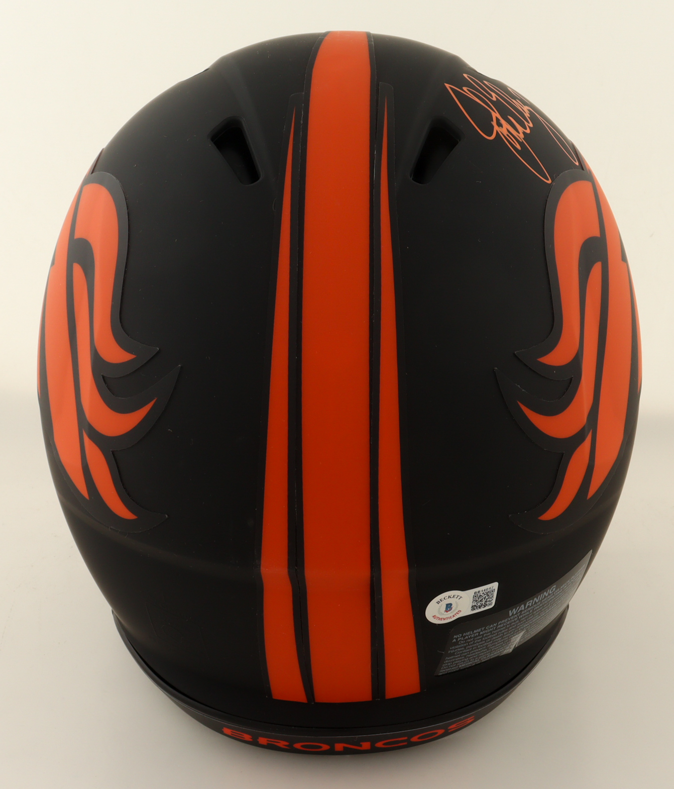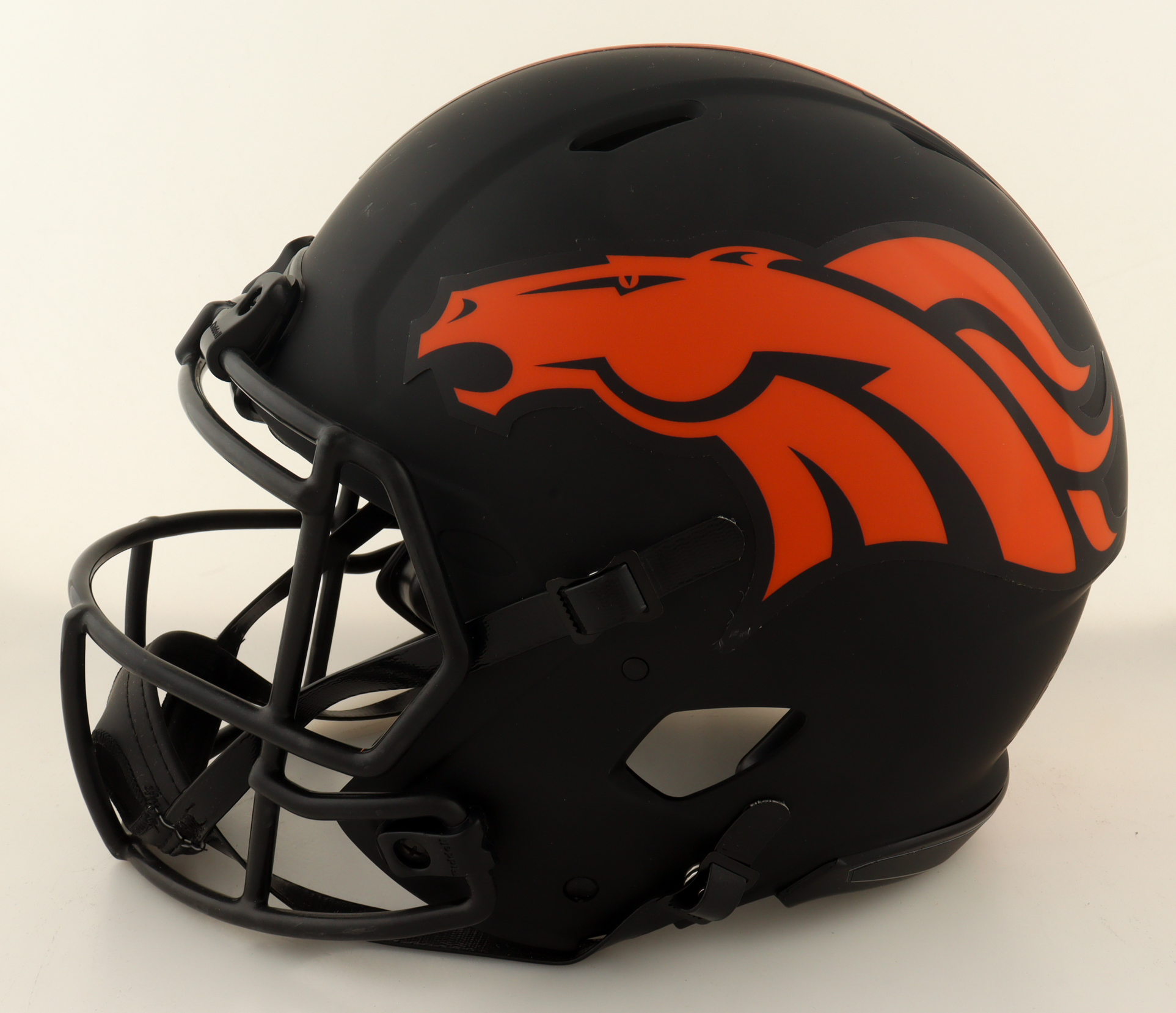 Riddell Denver Broncos full-size authentic on-field eclipse alternate speed helmet has been hand-signed by John Elway (HOF).
