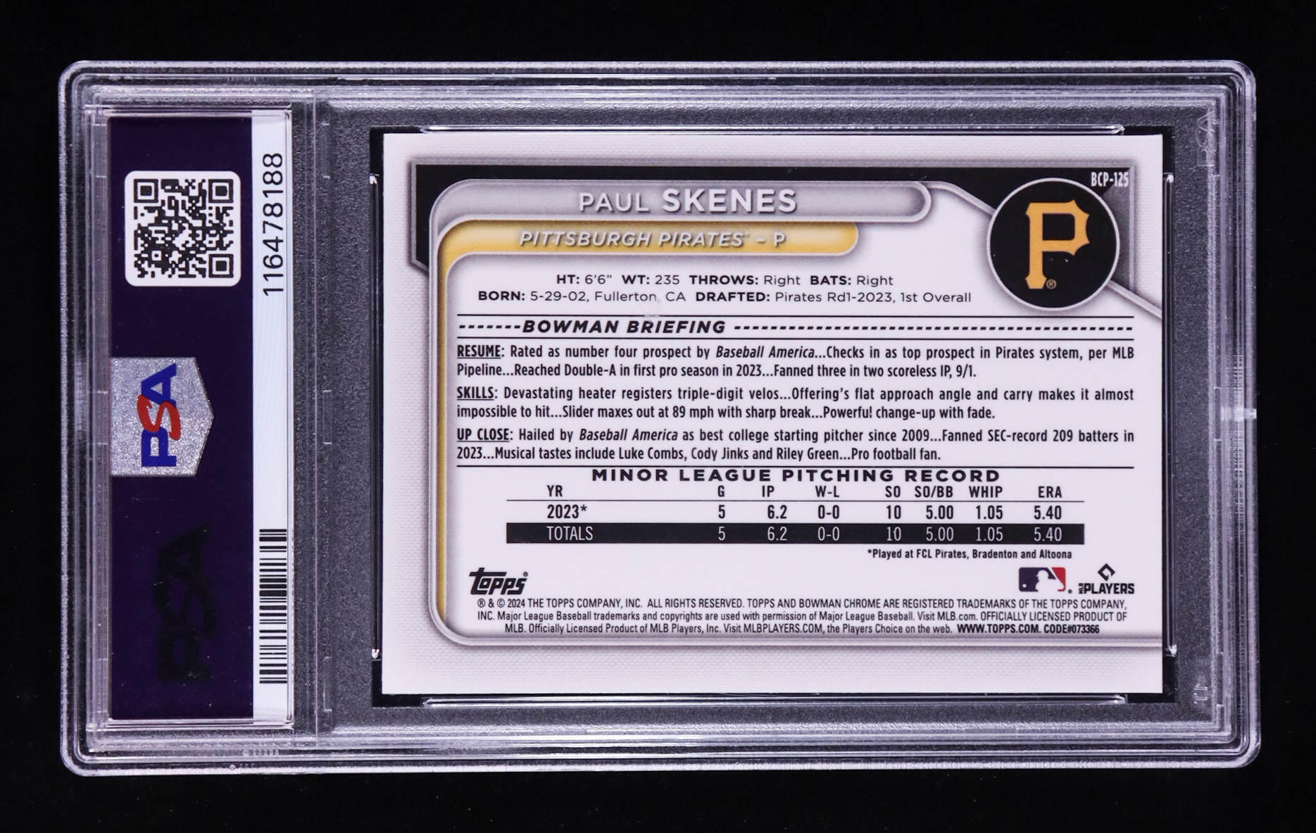 Paul Skenes 2024 Bowman Chrome Mega Box Prospects #BCP125 RC (PSA 10)