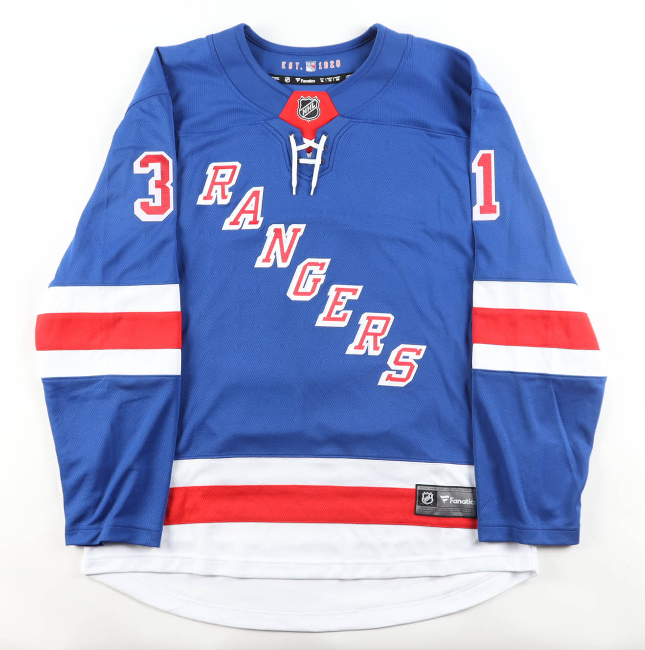 Fanatics jersey. Everything is sewn and pressed on, size XL. Hand-signed by Igor Shesterkin (New York Rangers).
