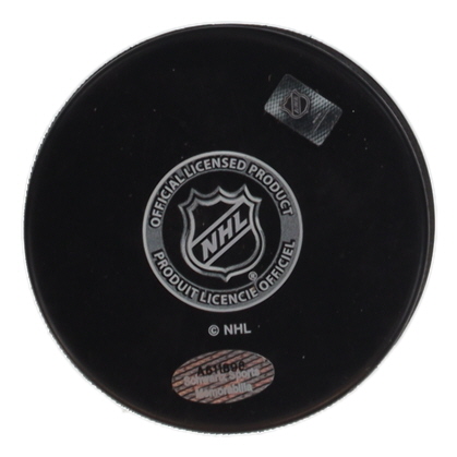 Boston Bruins logo hockey puck has been hand-signed and inscribed by Adam Oates (HOF).